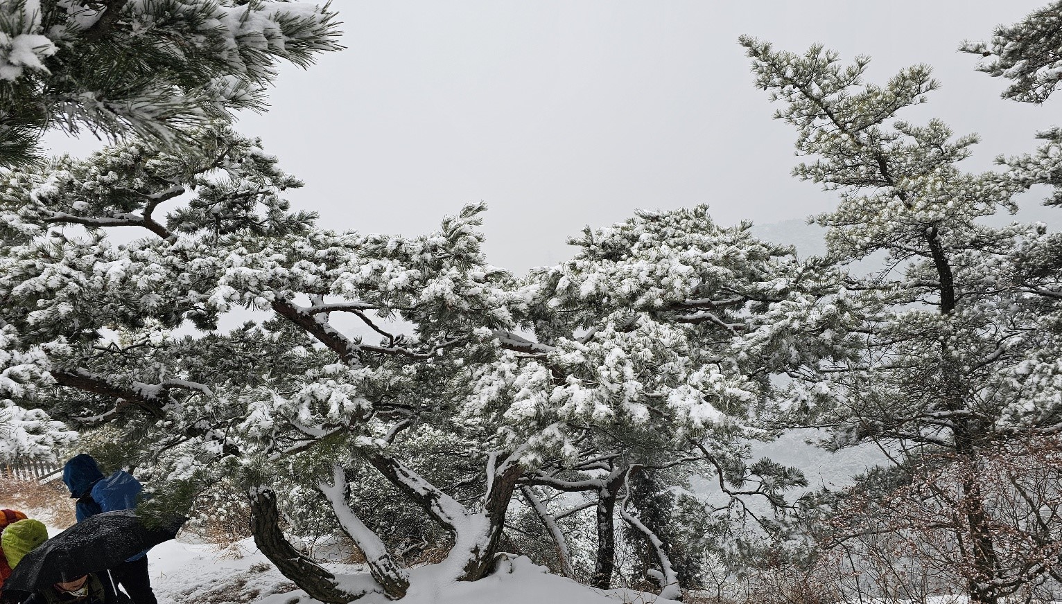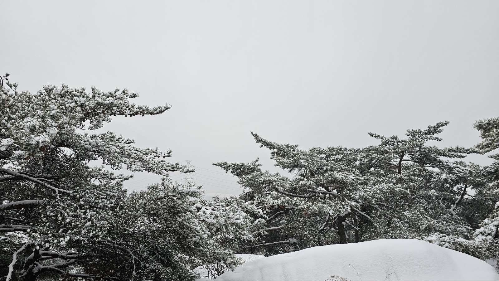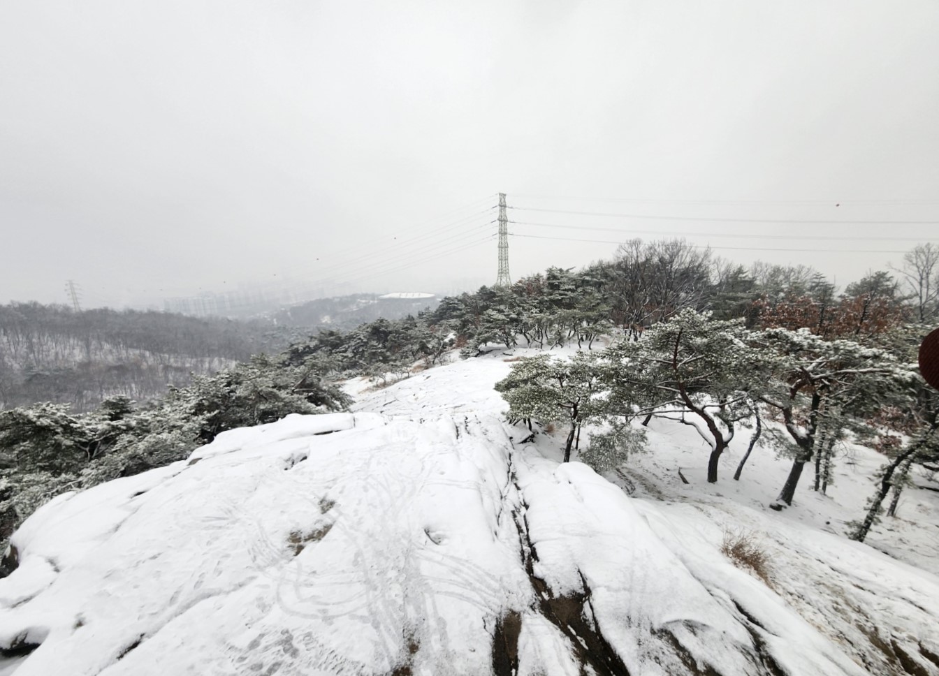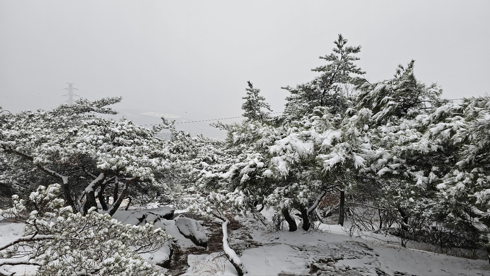 아차산에는 공식적인 명품 소나무가 많은 산이다, 눈이 소복히 내려 쌓이는 아차산은 어떤 모습일까?