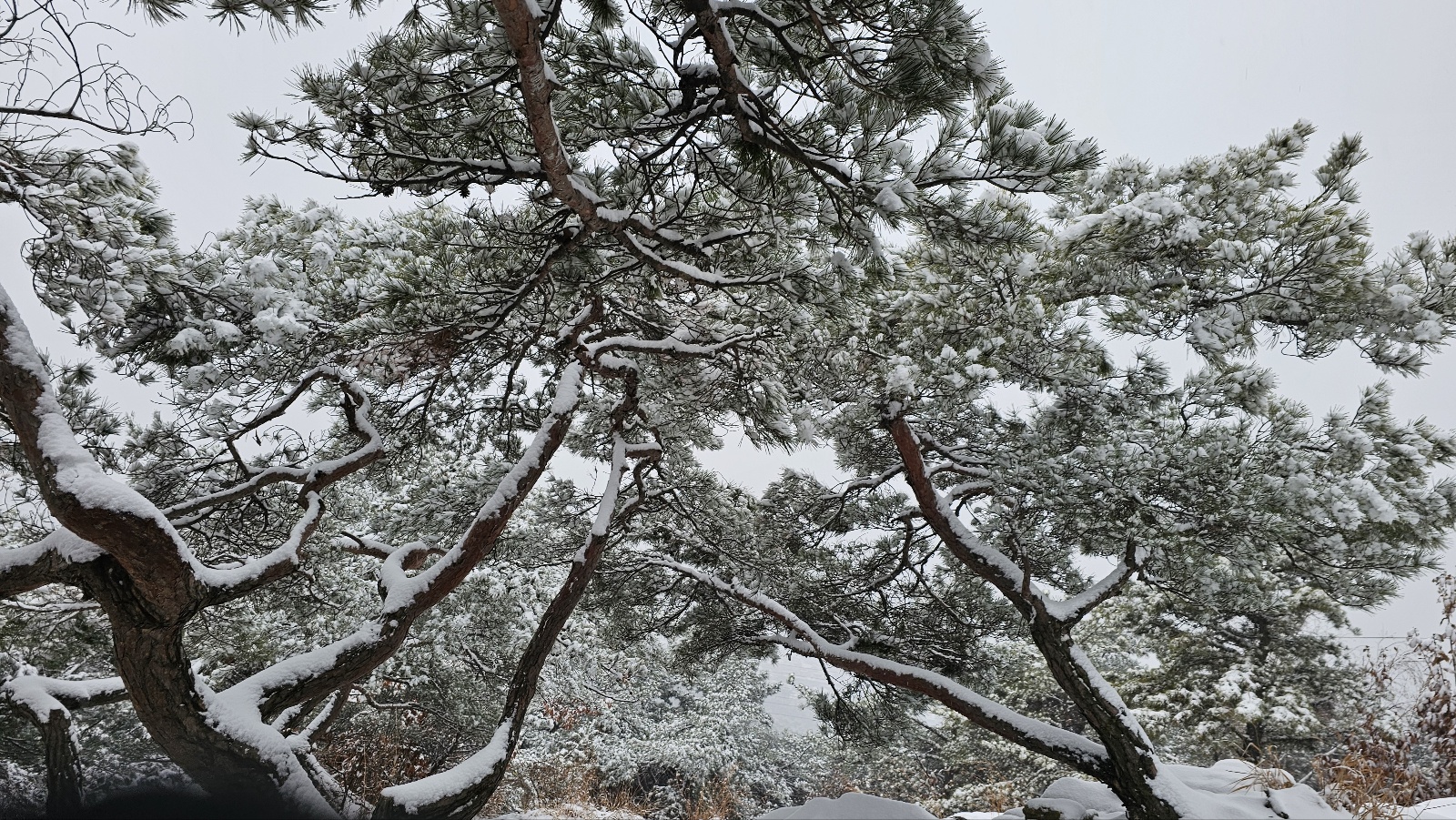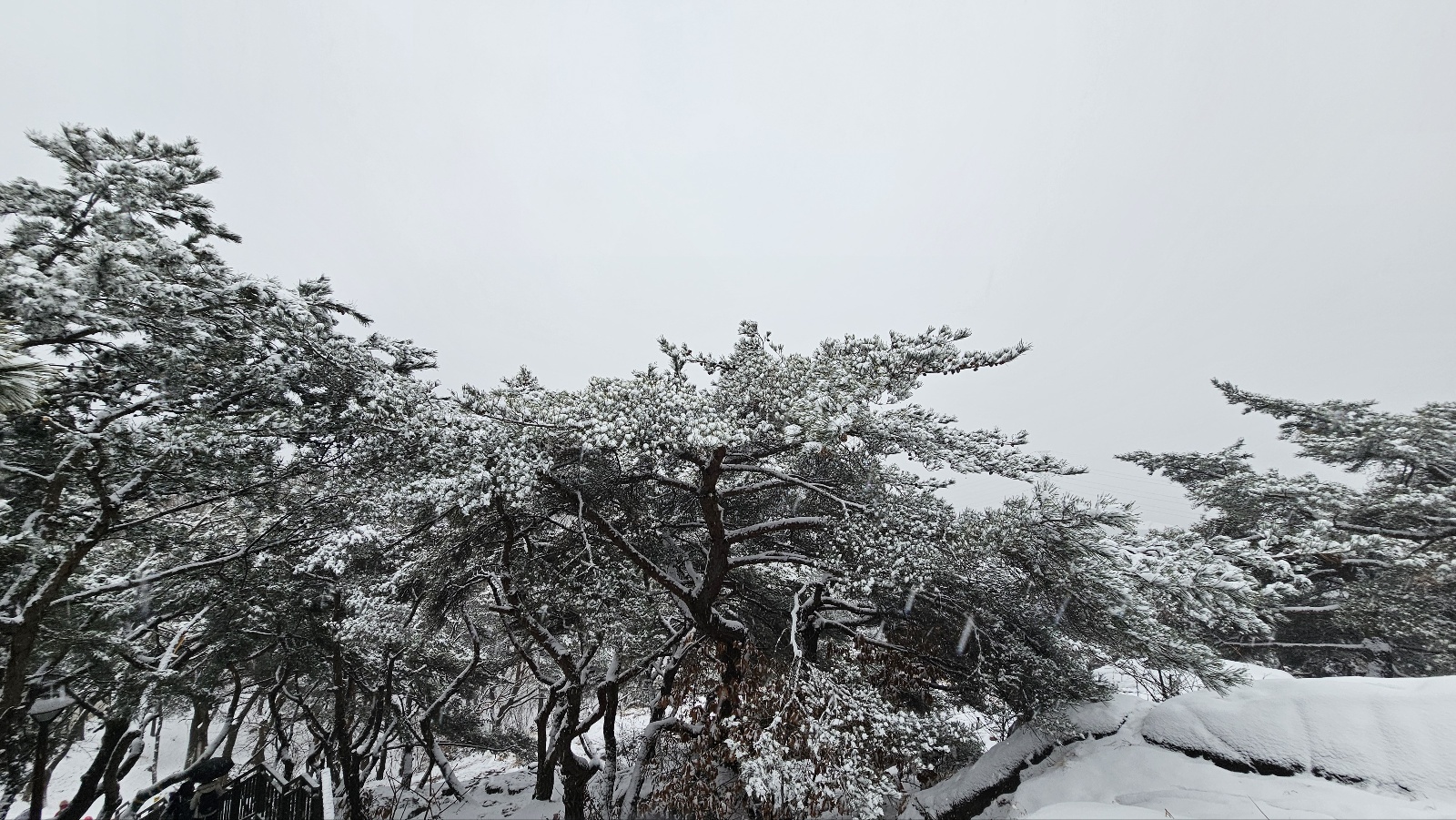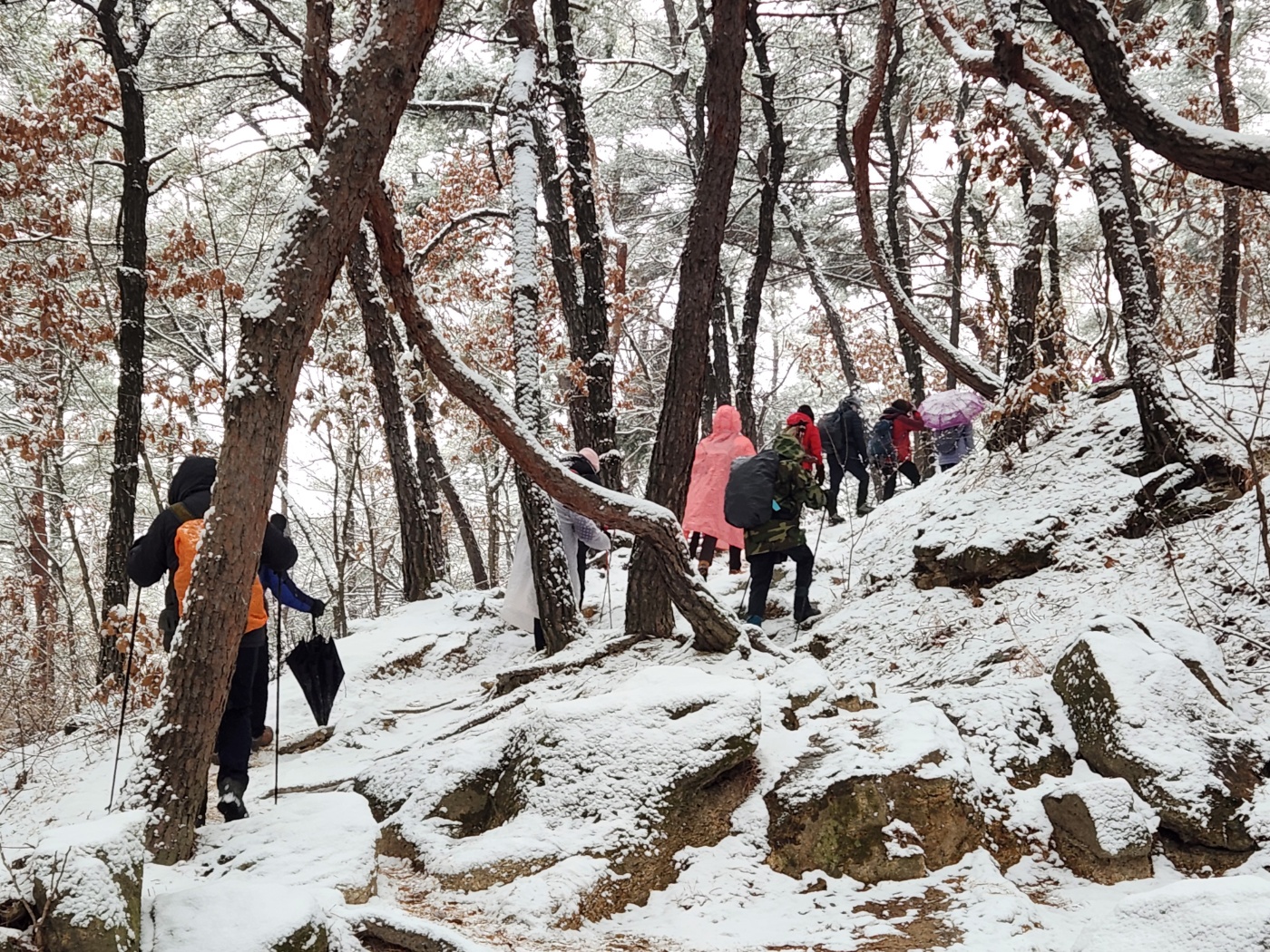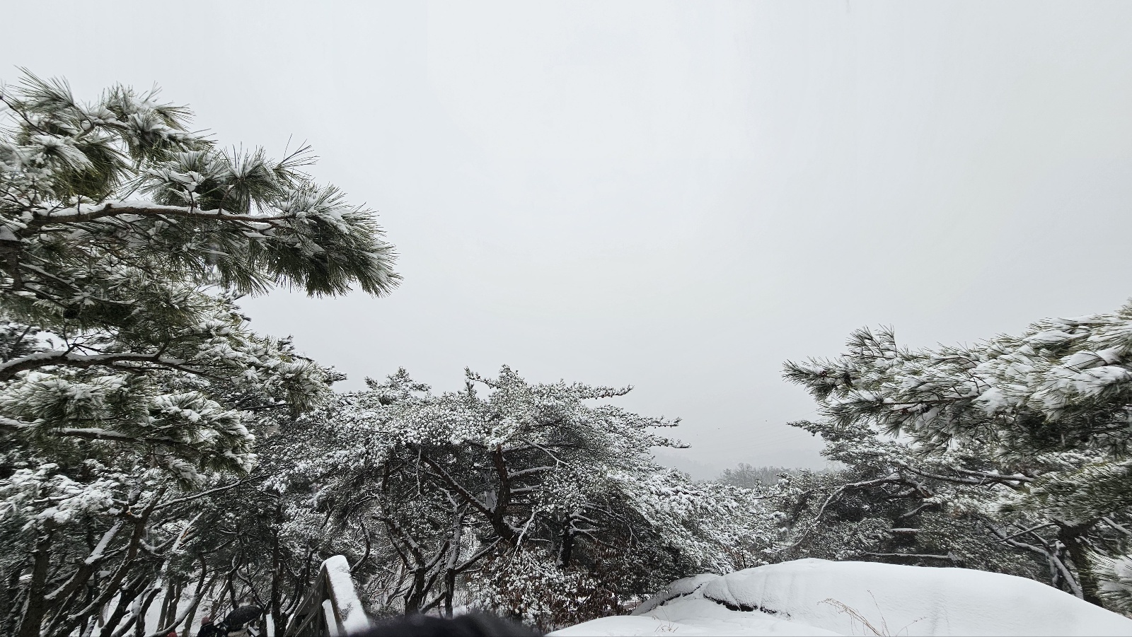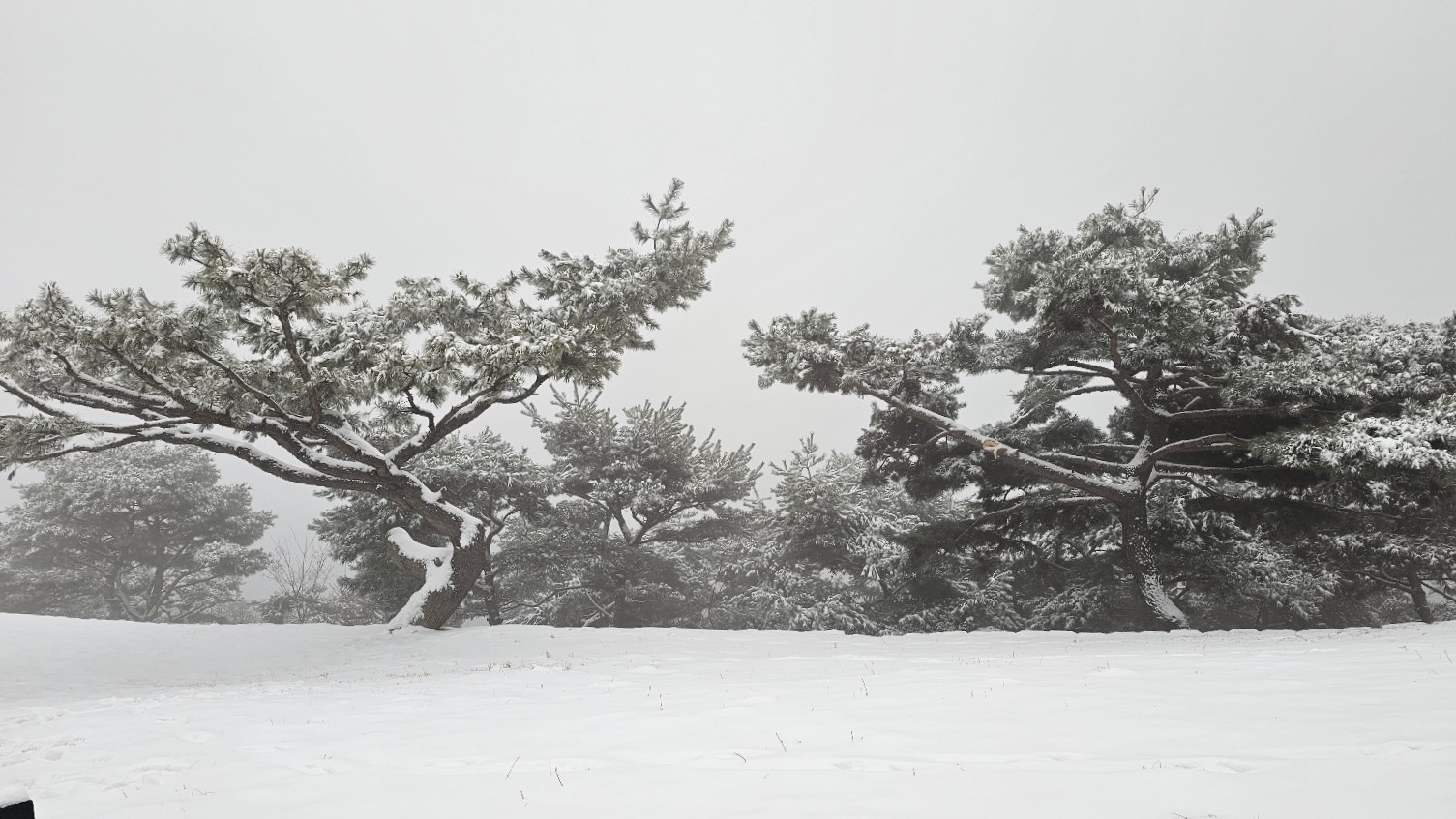 아차산에는 공식적인 명품 소나무가 많은 산이다, 눈이 소복히 내려 쌓이는 아차산은 어떤 모습일까?