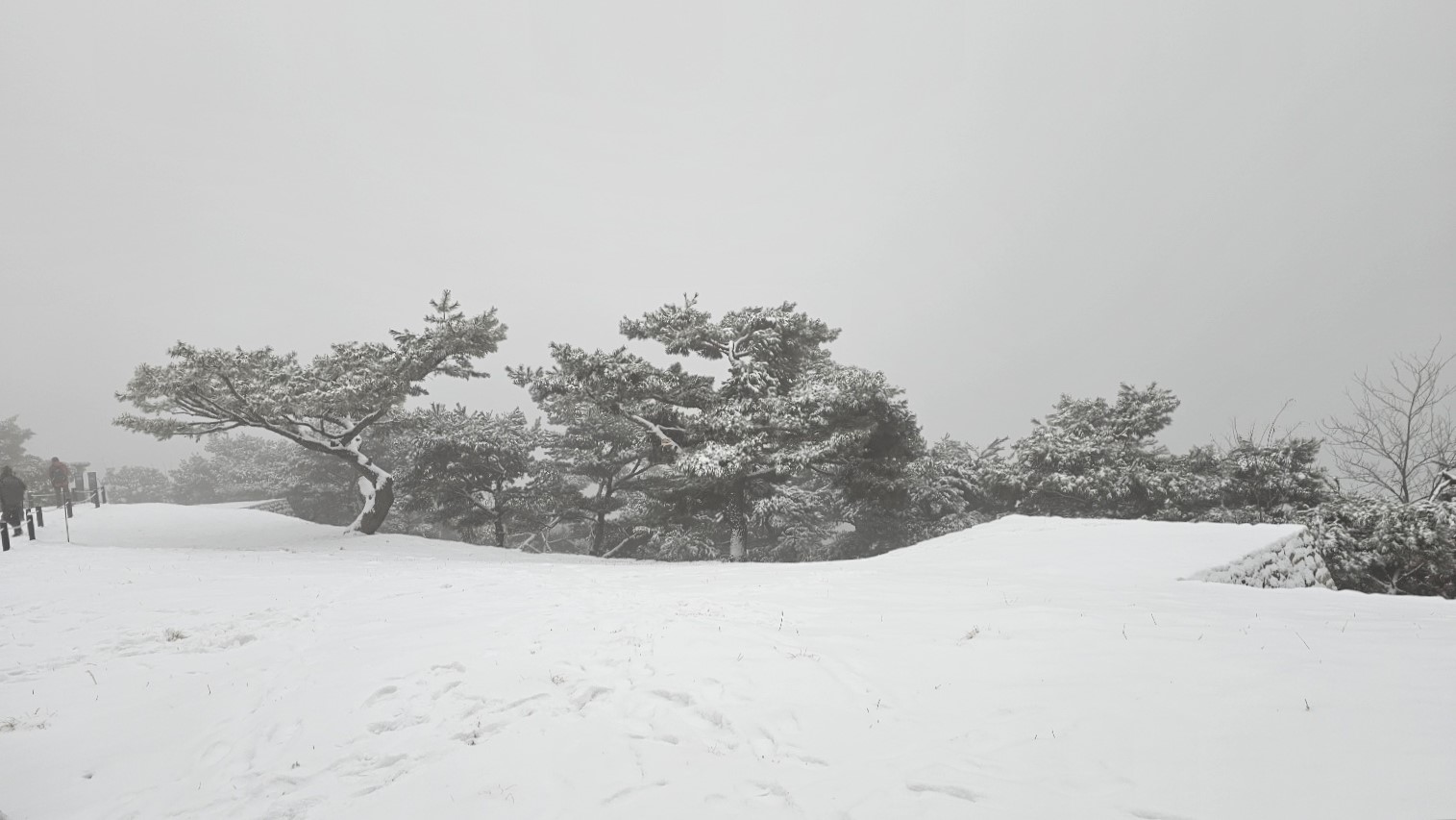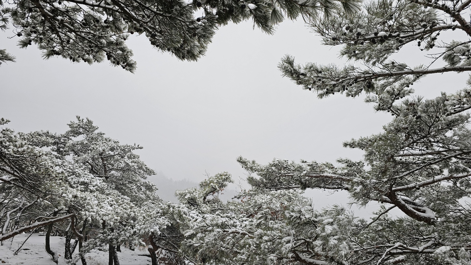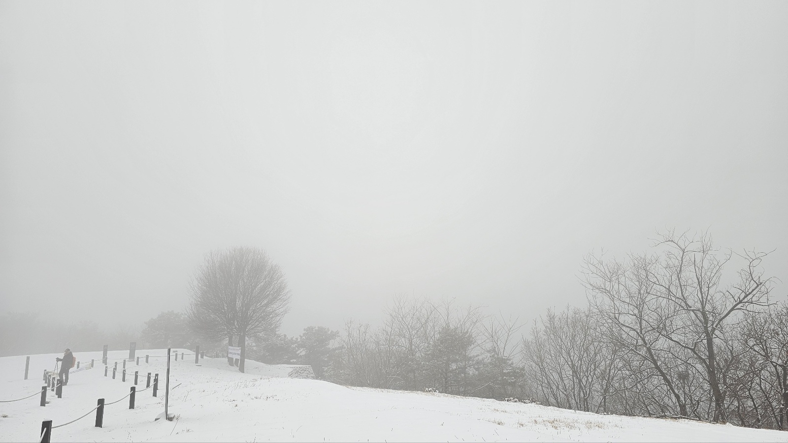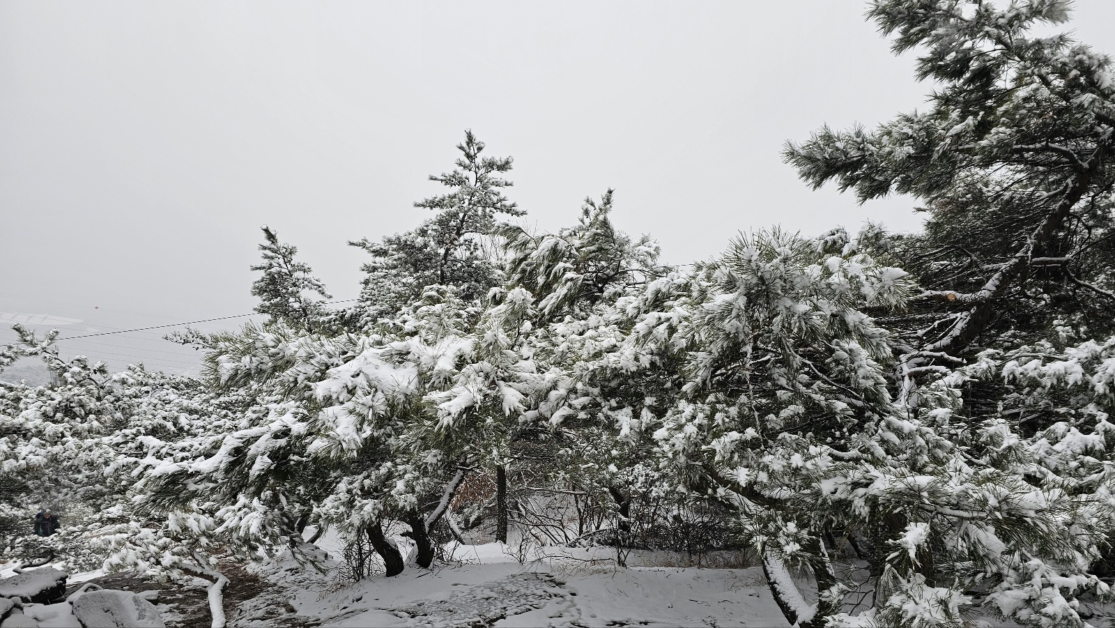 아차산에는 공식적인 명품 소나무가 많은 산이다, 눈이 소복히 내려 쌓이는 아차산은 어떤 모습일까?