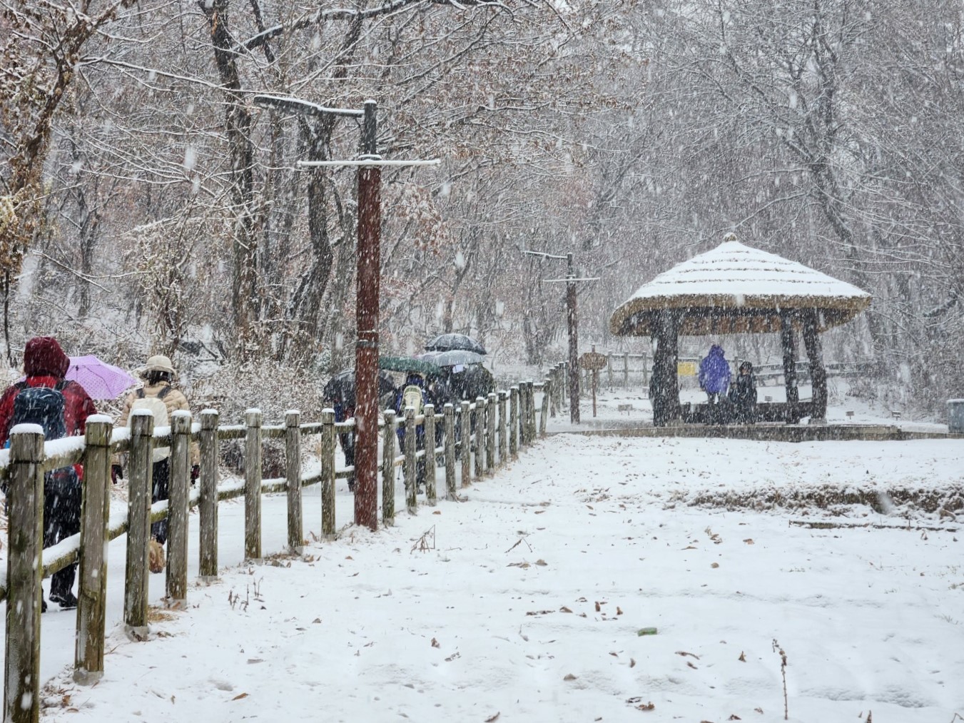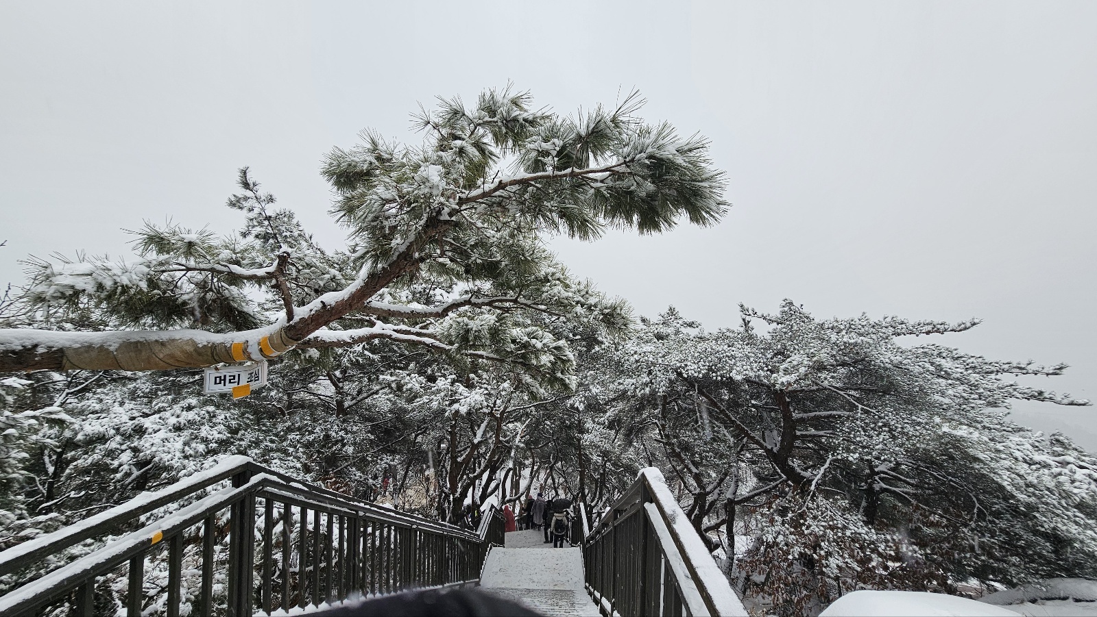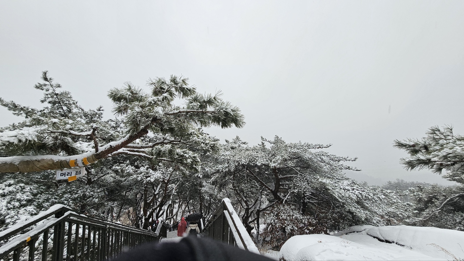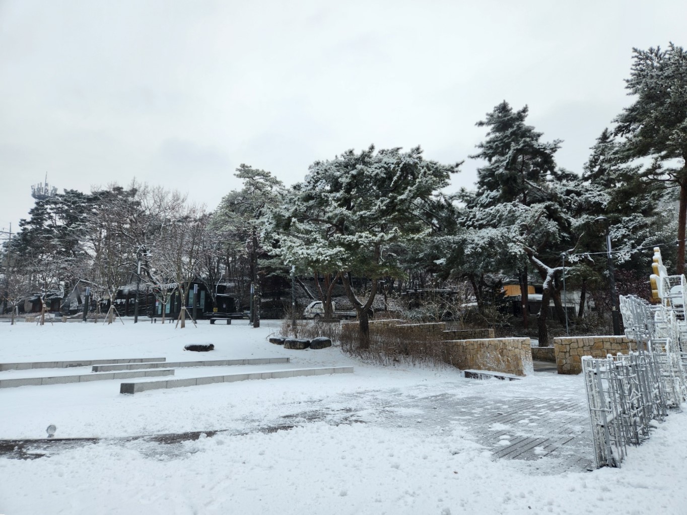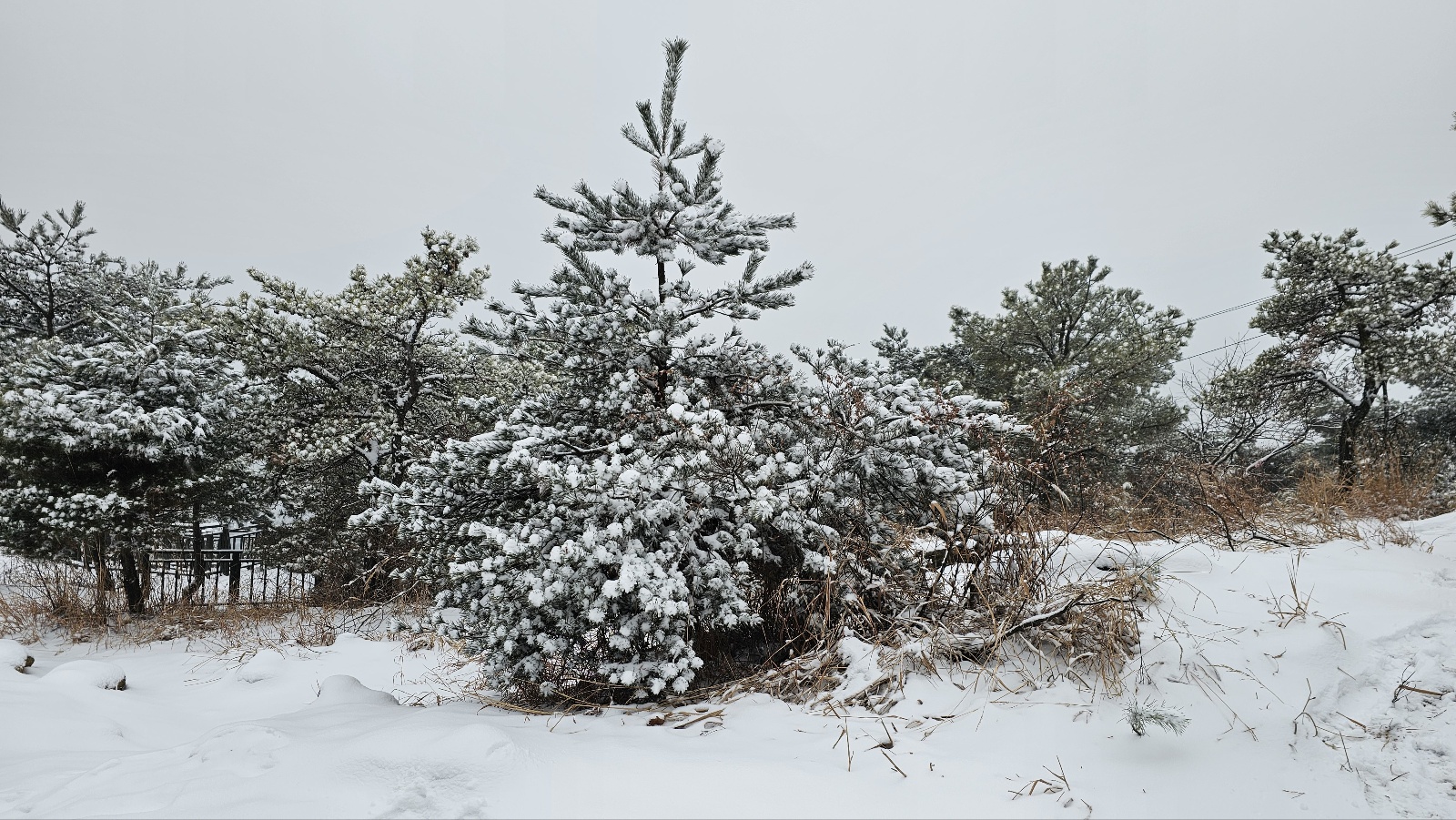아차산에는 공식적인 명품 소나무가 많은 산이다, 눈이 소복히 내려 쌓이는 아차산은 어떤 모습일까?