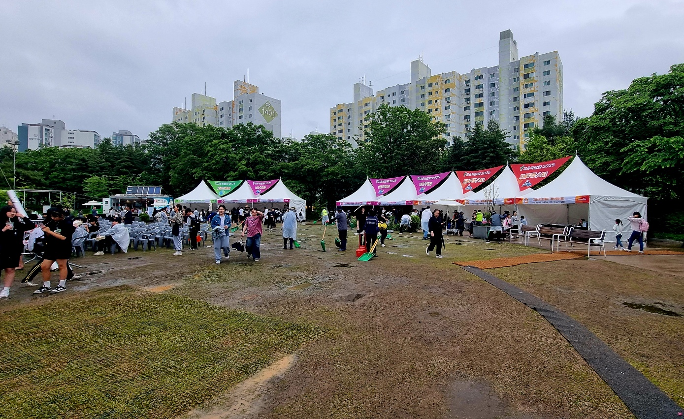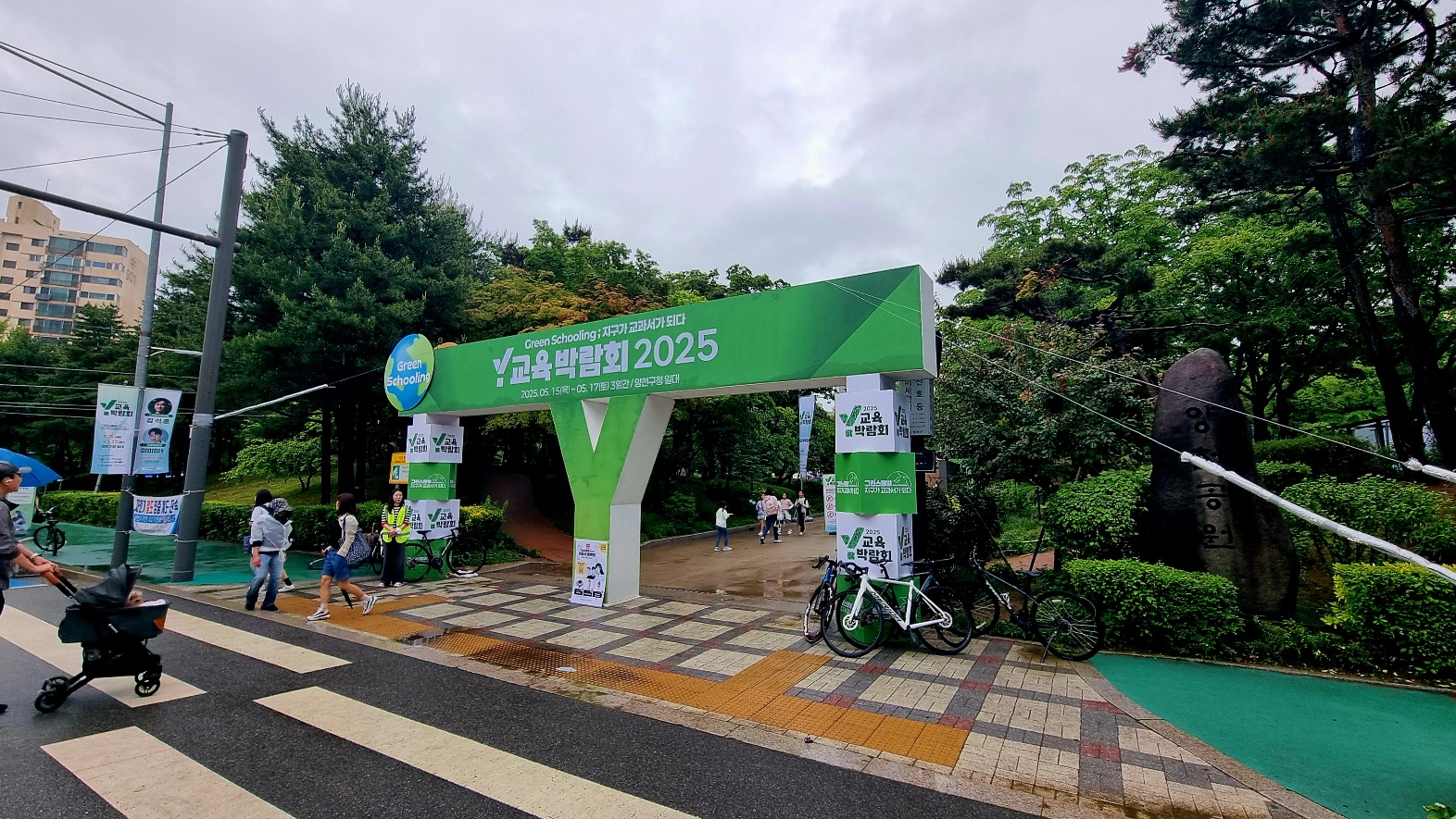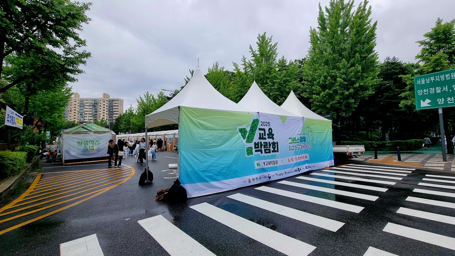 2025년 5월 15일인 오늘은 비가 내리지만, 양천구청옆 양천공원일대는 "지구가 교과서가 된다"는 Y교육박람회가 열리고 있었다,