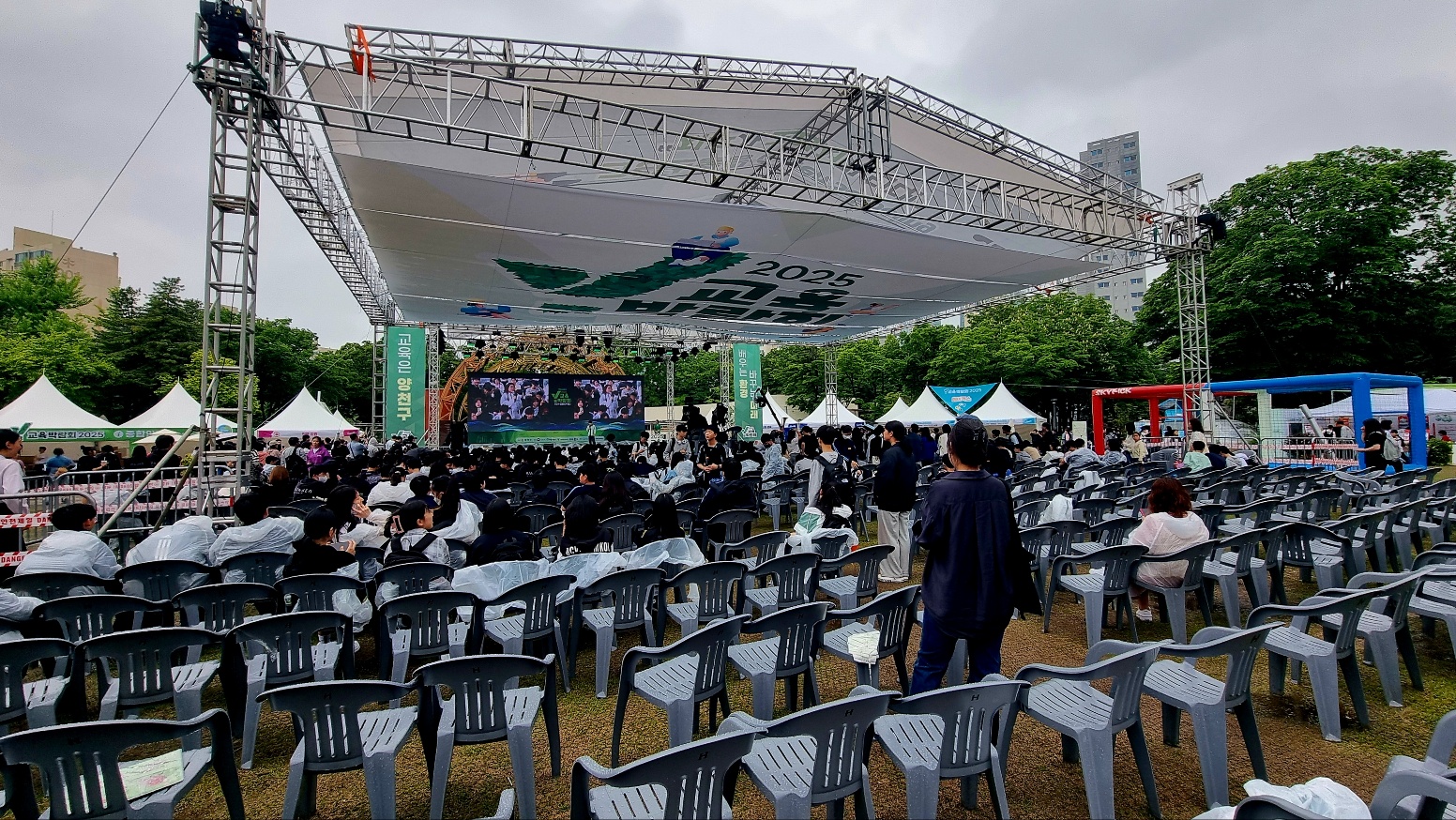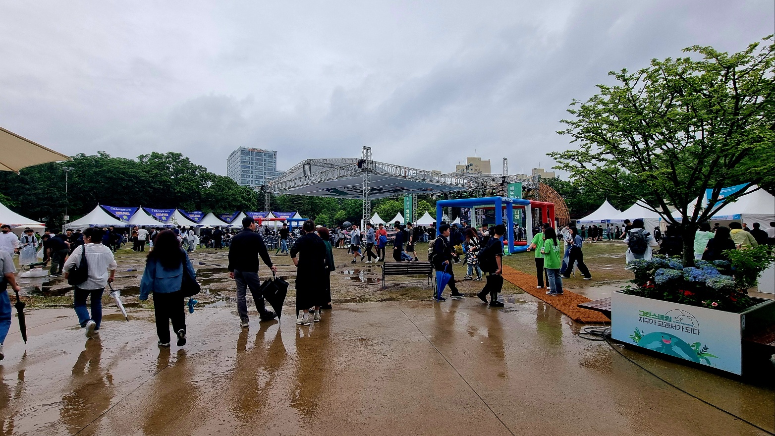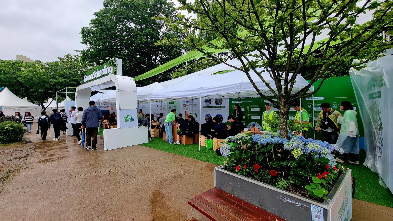2025년 5월 15일인 오늘은 비가 내리지만, 양천구청옆 양천공원일대는 "지구가 교과서가 된다"는 Y교육박람회가 열리고 있었다,