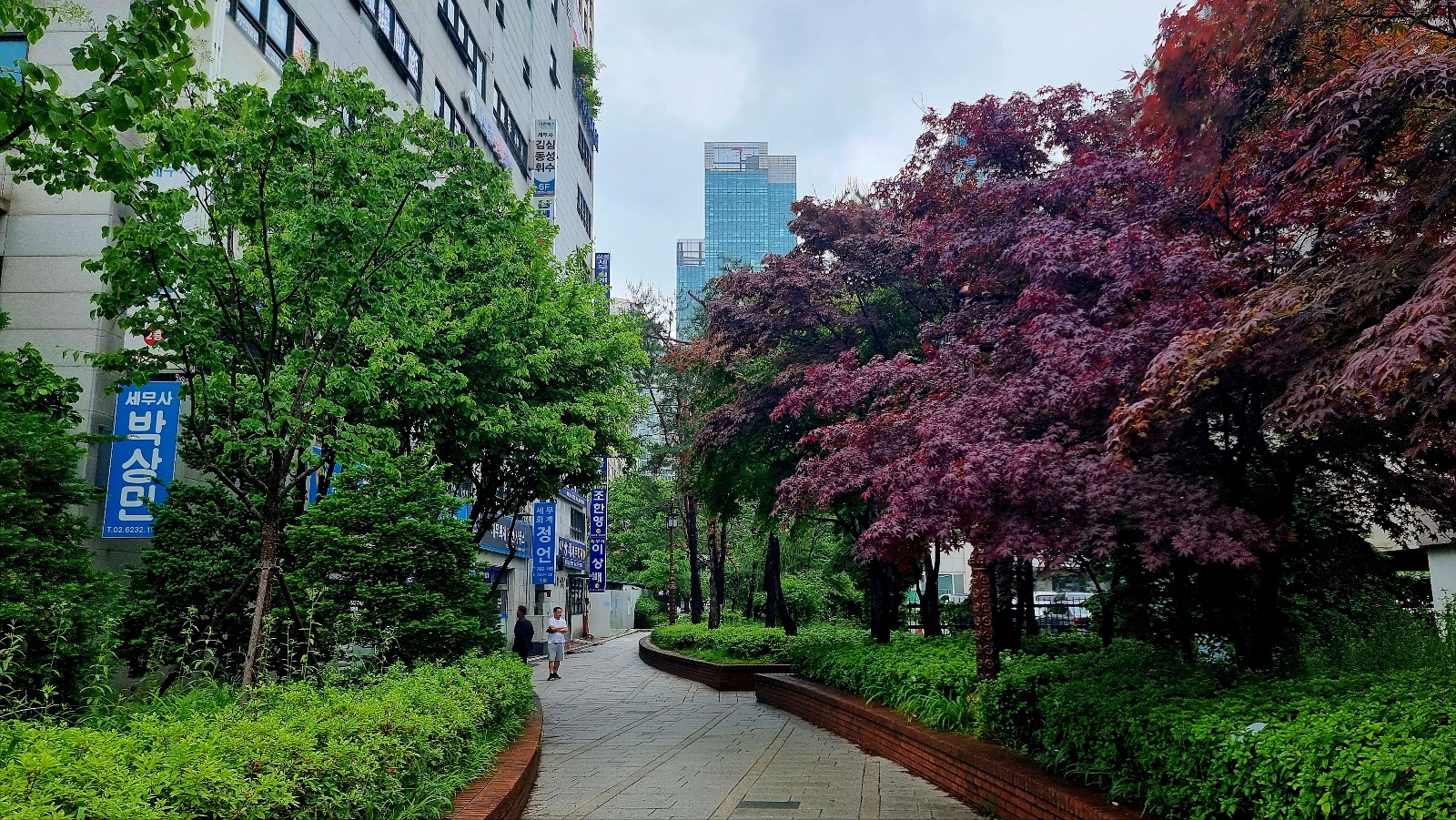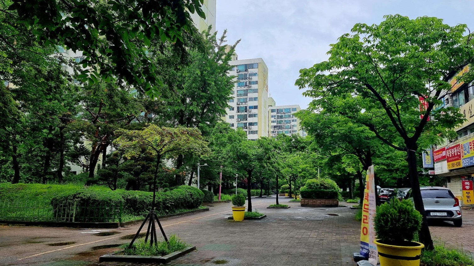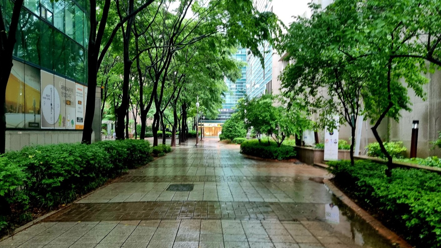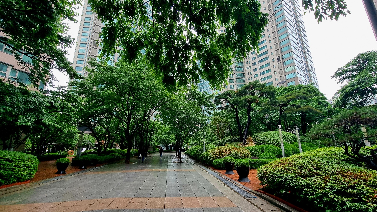 조경이 잘 되여있는 길을 따라 가면서