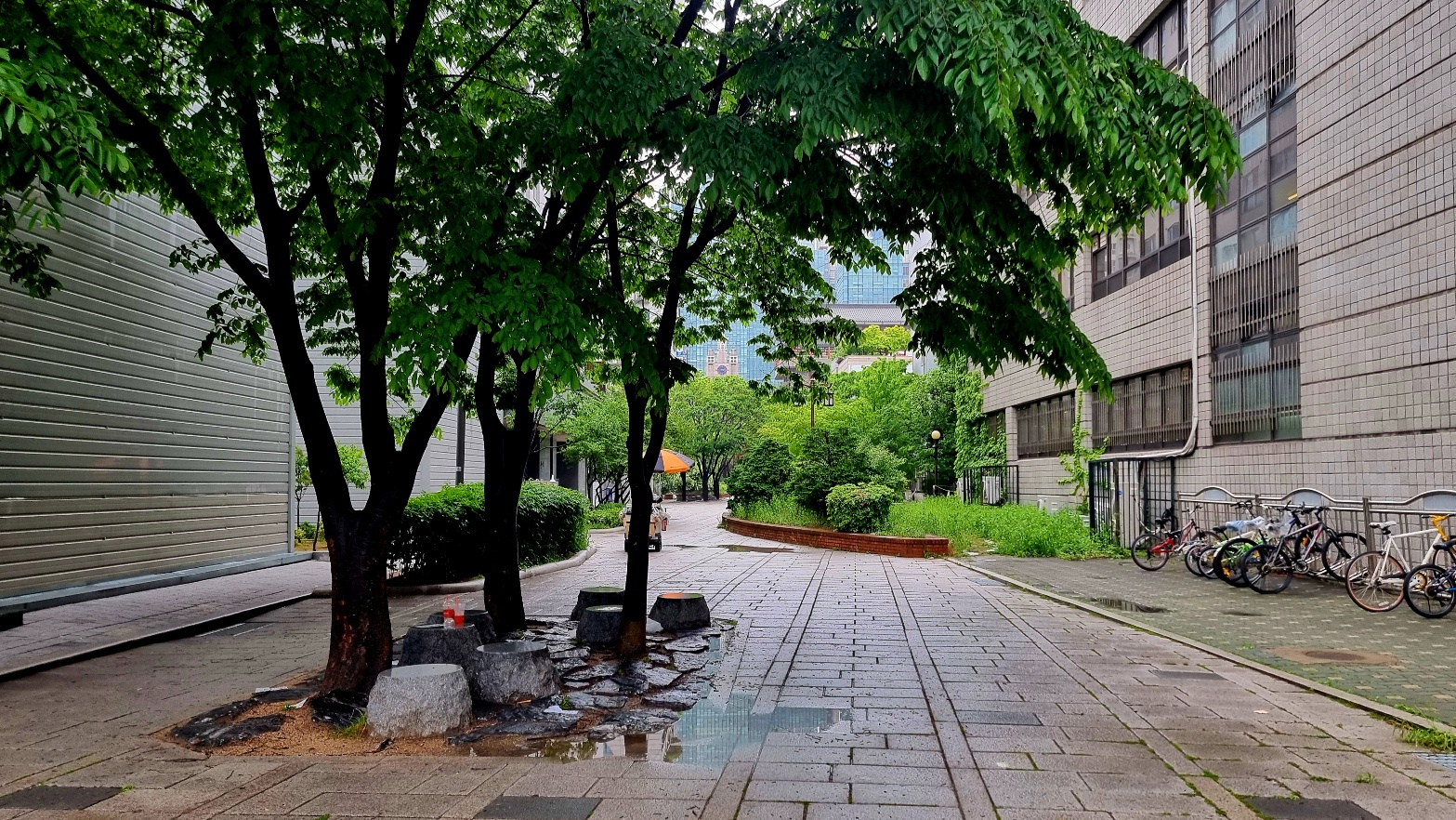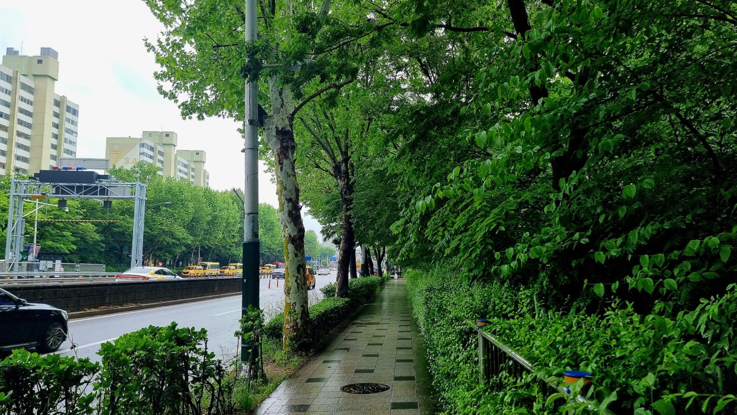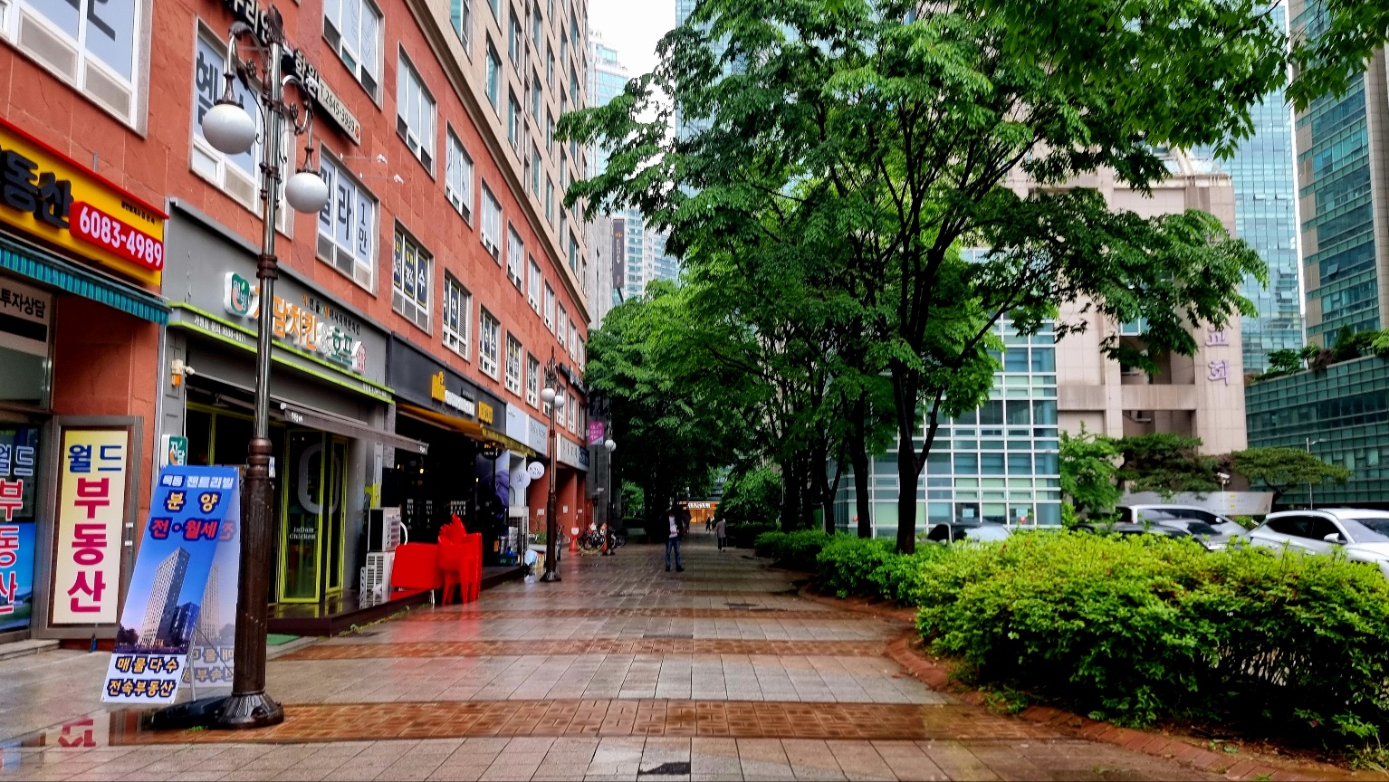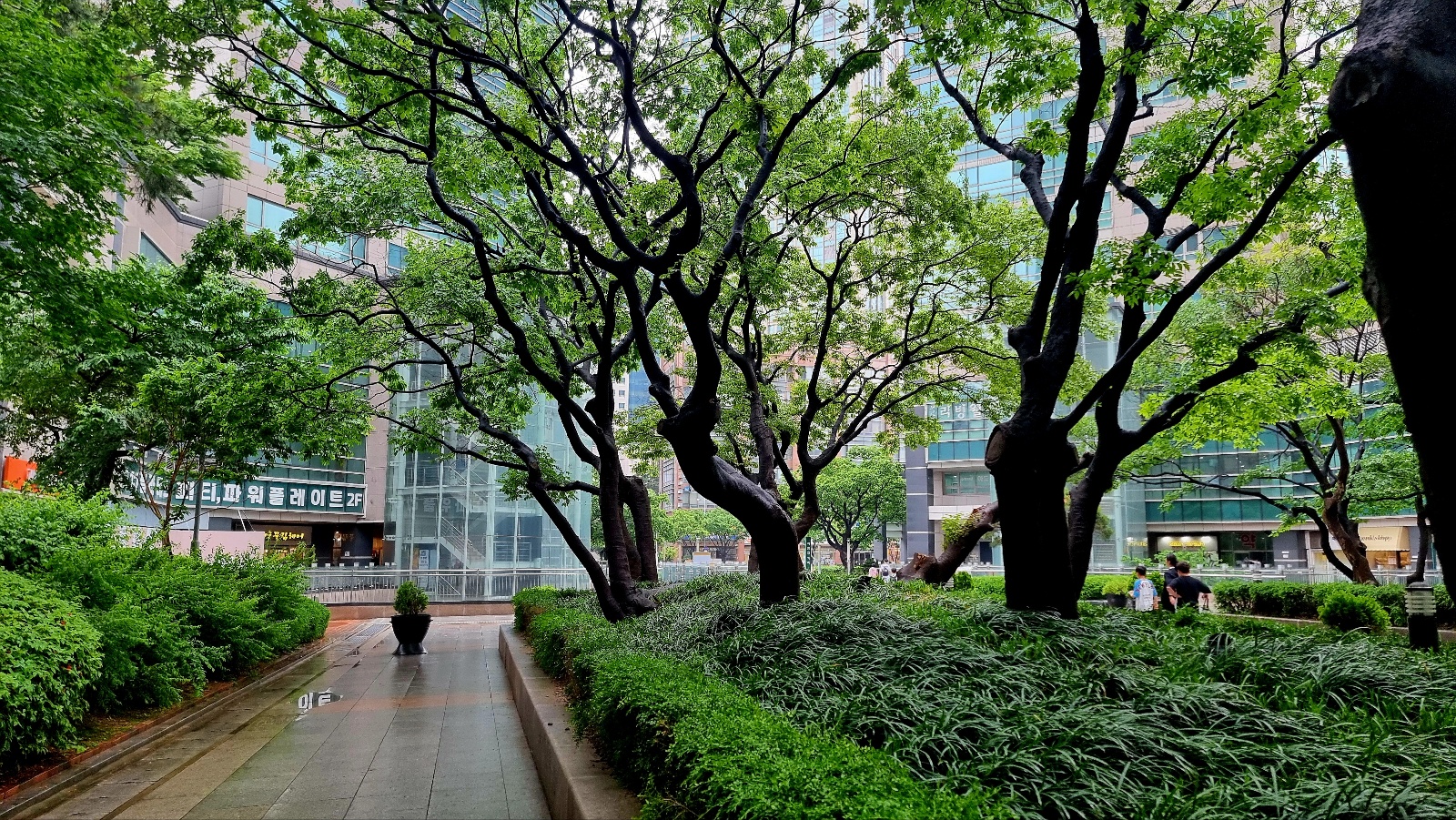 조경이 잘 되여있는 길을 따라 가면서