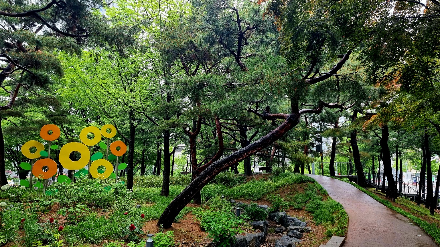 교육박람회가 어떤 전시회인지 알지 못하지만 박람회가 열리는 곳을 돌아보고 나서 양천공원 숲길로 들어간다,