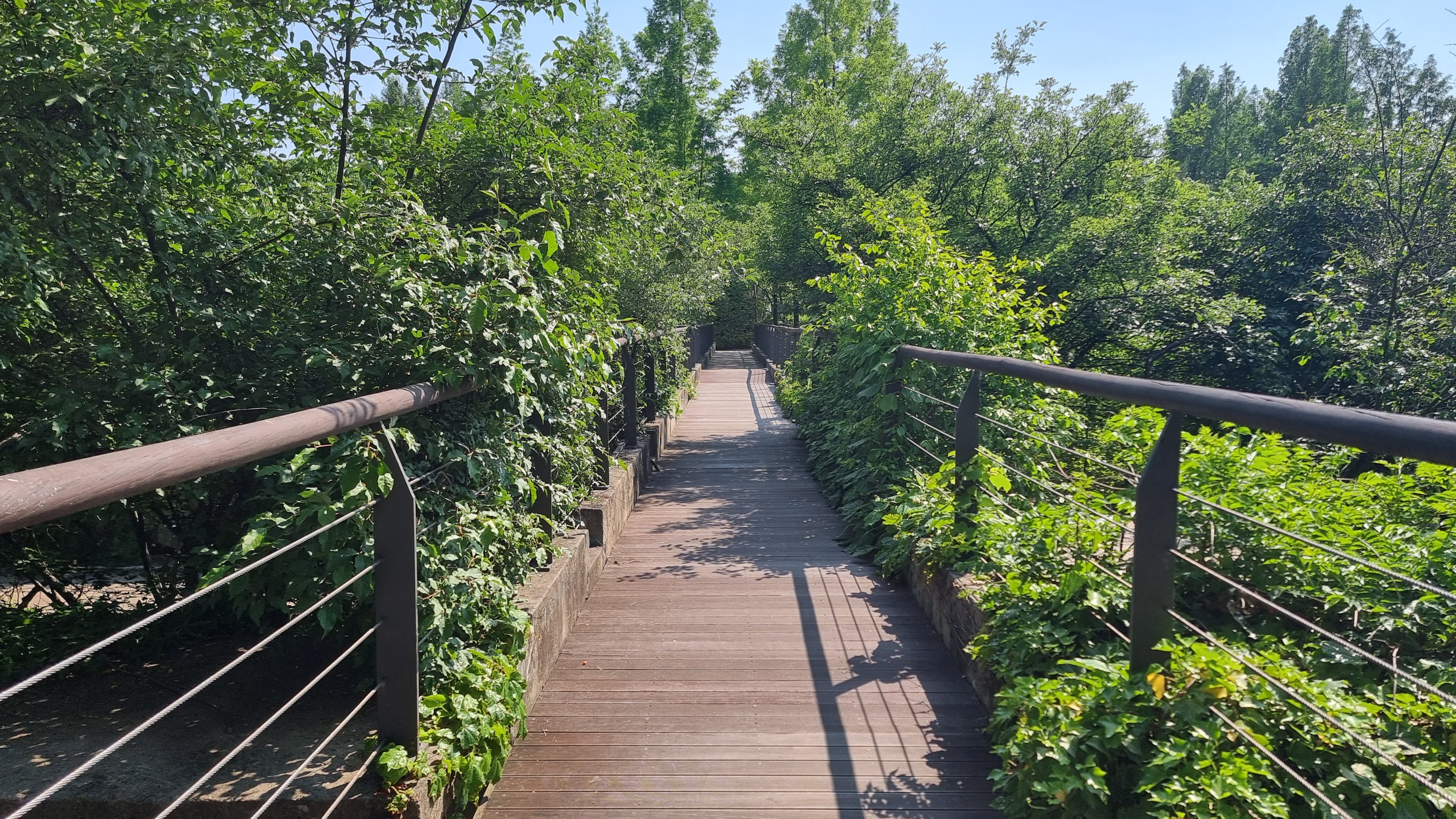 선유도 카페나루 앞에서 시간의정원과 수생식물원 사이로 메타세콰이어 길로 이어지는 길은 이렇게 다리를 놓아 만들어서 다리를 지나가면서도 아래 공원을 내려다 볼 수도 있다,