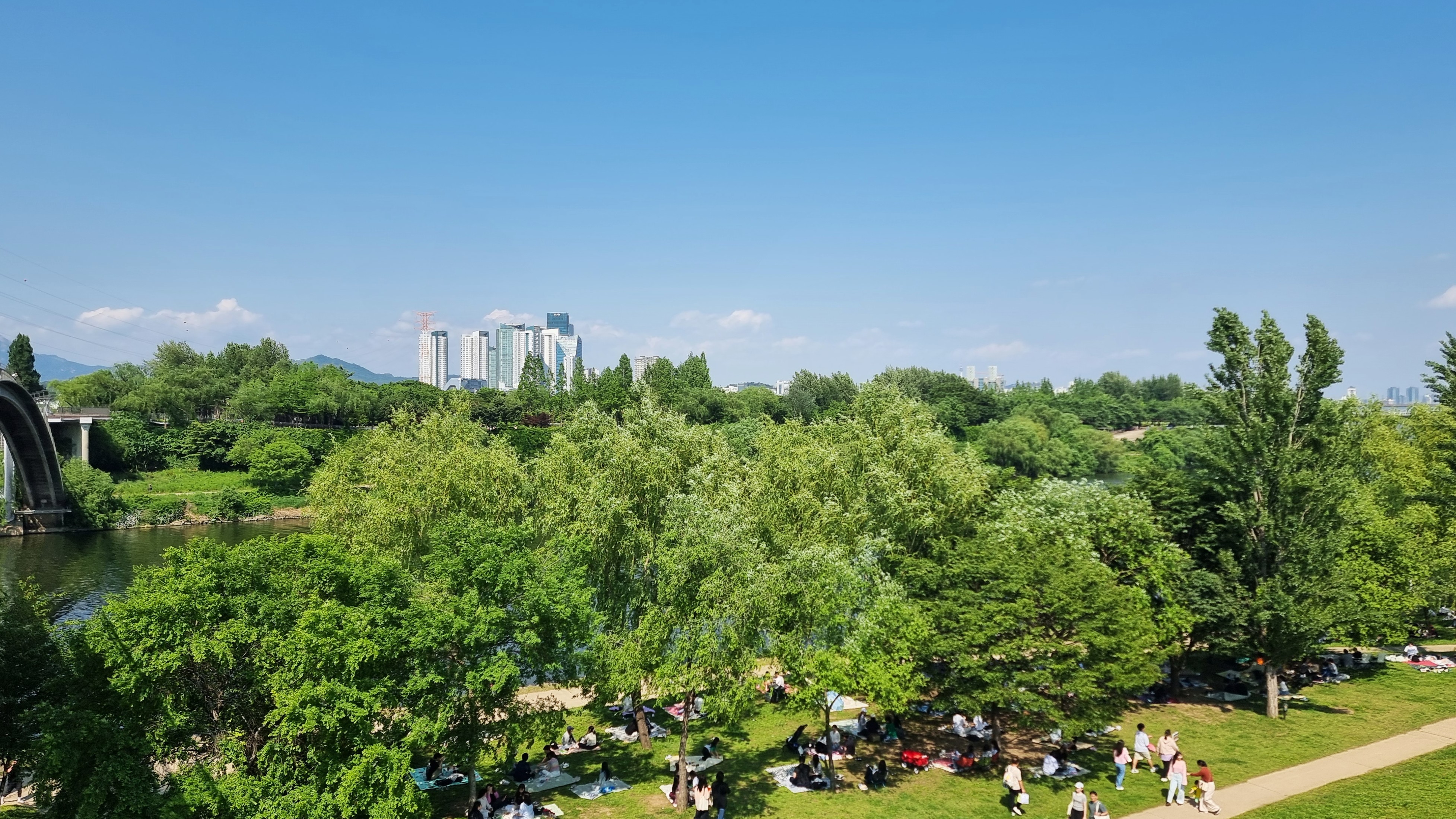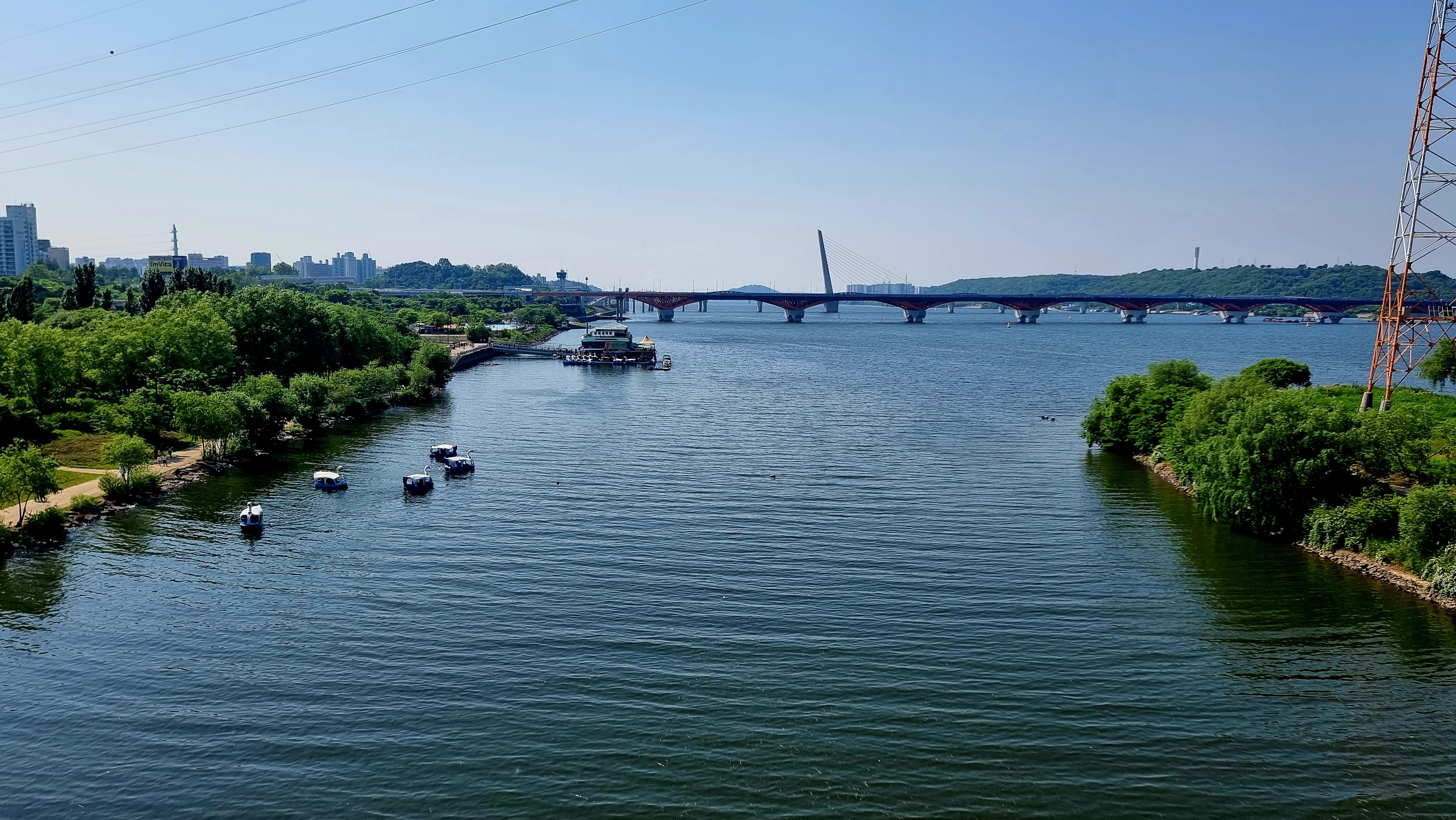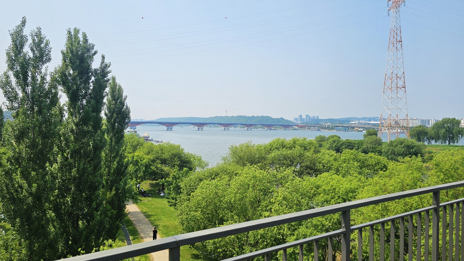 수질정화원 끝, 한강에서 보이는 양화대교와 마포 일대