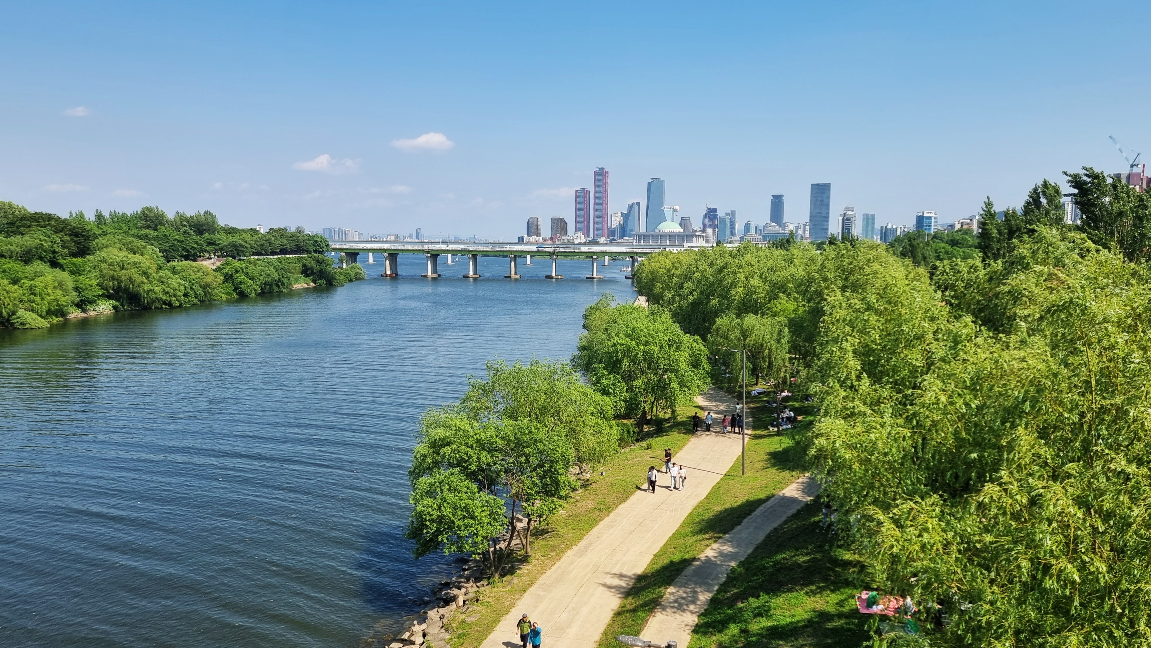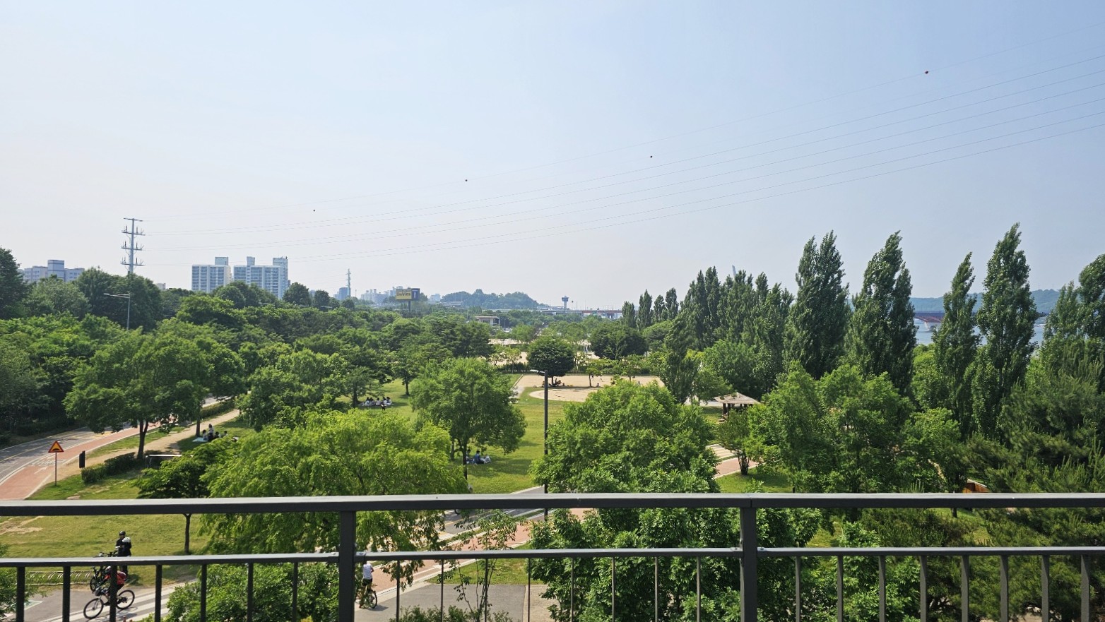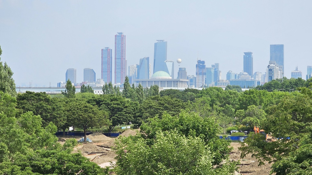 수질정화원 끝, 한강에서 보이는 양화대교와 마포 일대