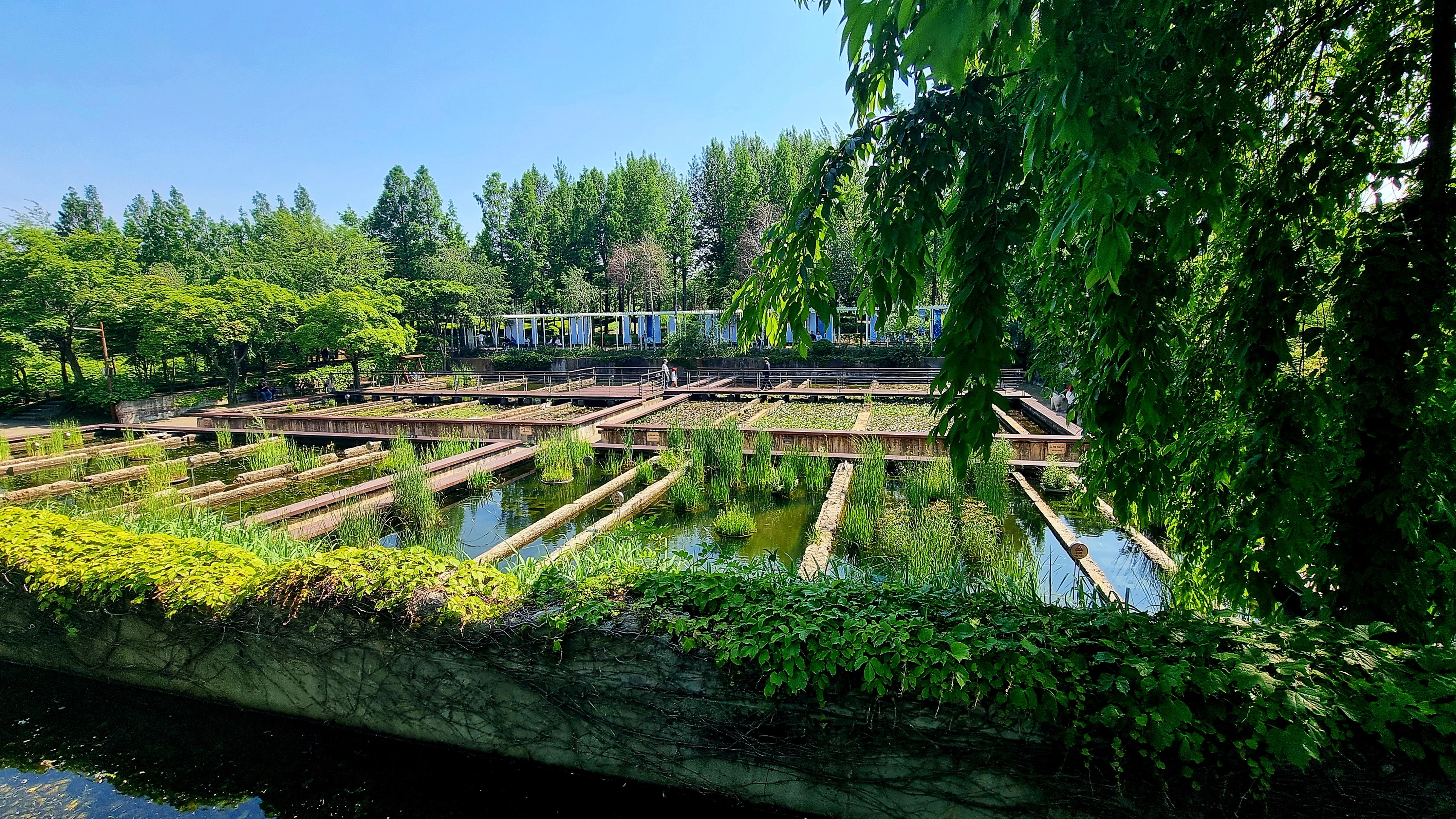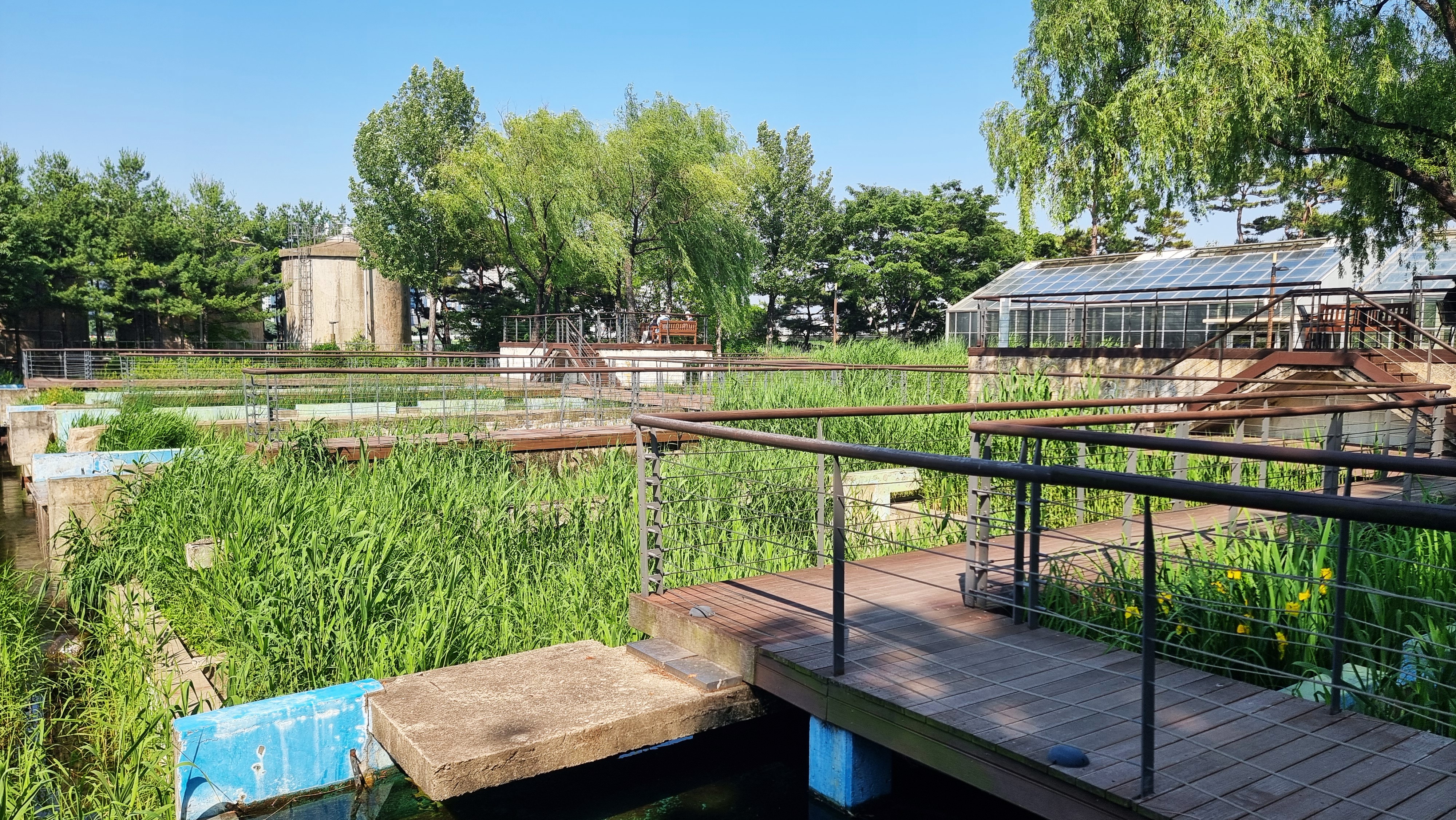 수생식물이 식재된 계단식 수조를 거치면서 물이 정화되는 과정을 가까이서 관찰 할 수 있는 곳이다,