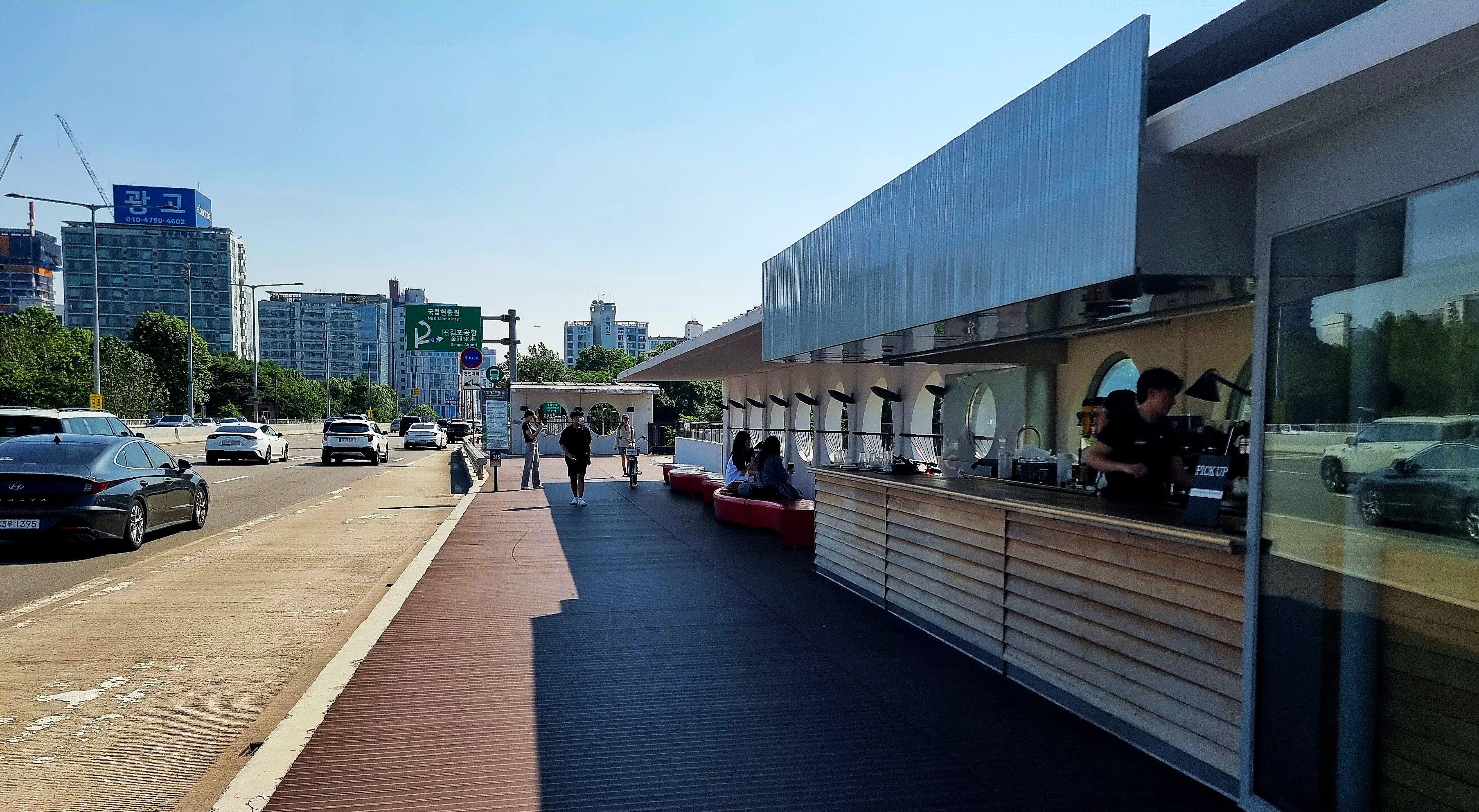 여기가 양화대교 전망카페다, 이곳 버스 정류장에서는 지하철역이 있는