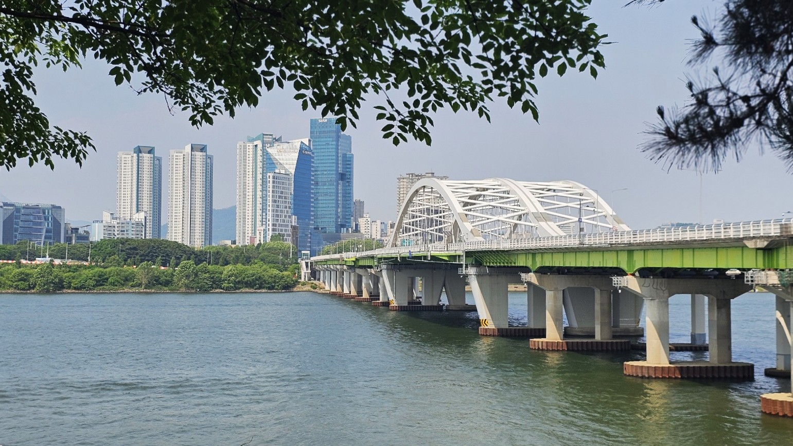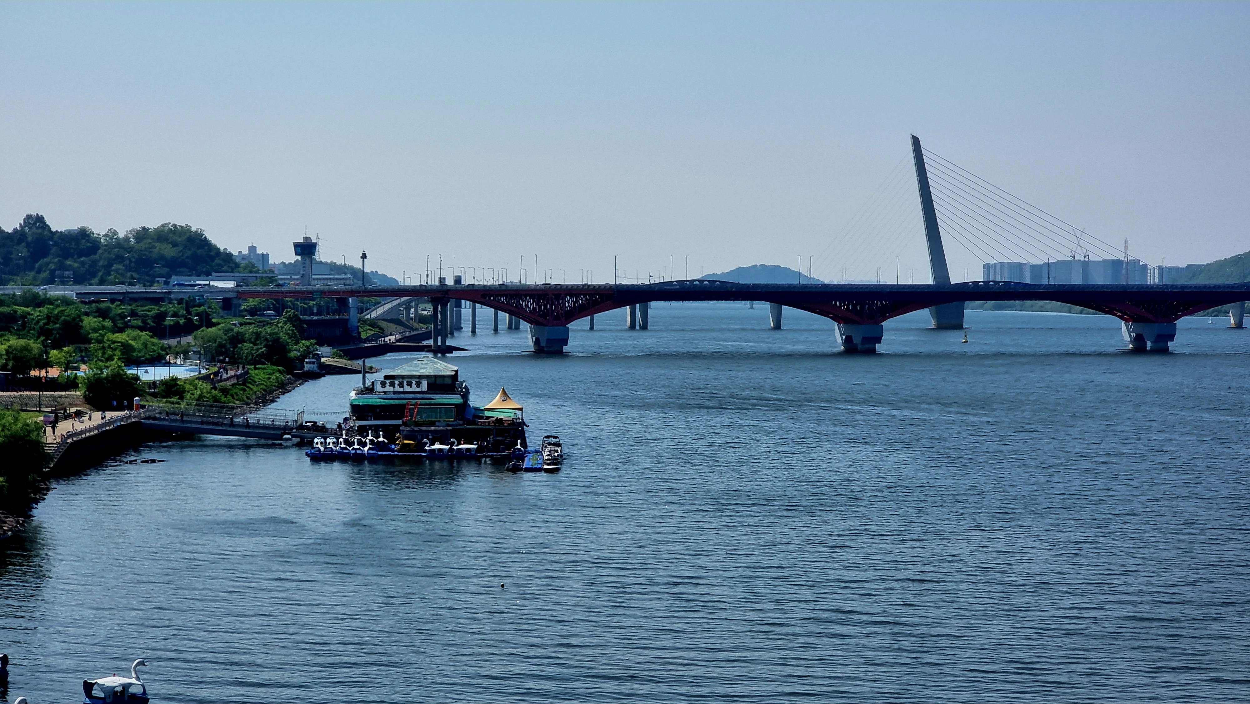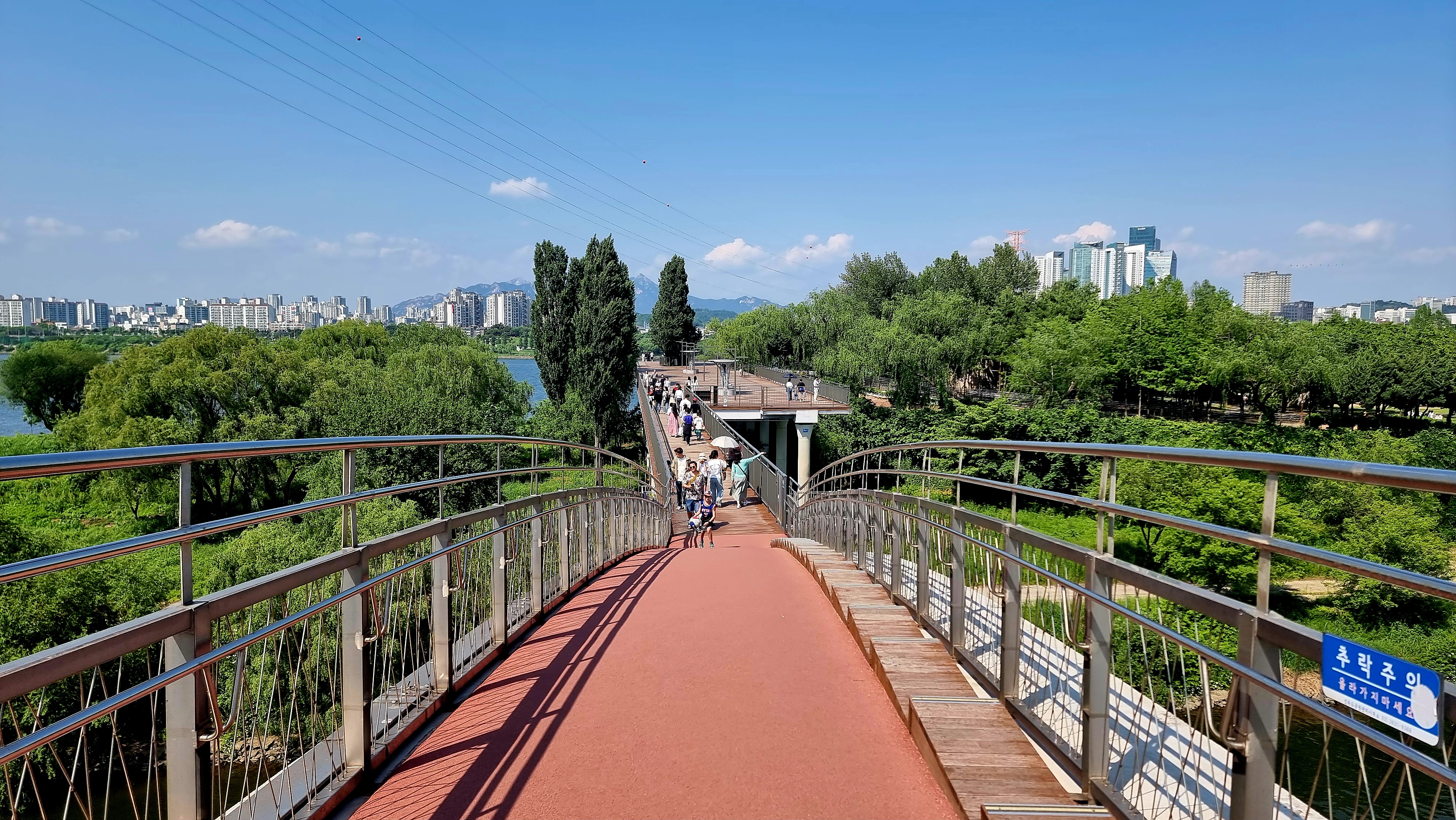 선유교로 왔다, 한강을 가로지르는 무지개 모양의 선유교(仙遊橋)는 초고강도 콘크리트(Guctal) 를 사용하여 시공한 가볍고 날렵한 모습으로 지어진 다리로