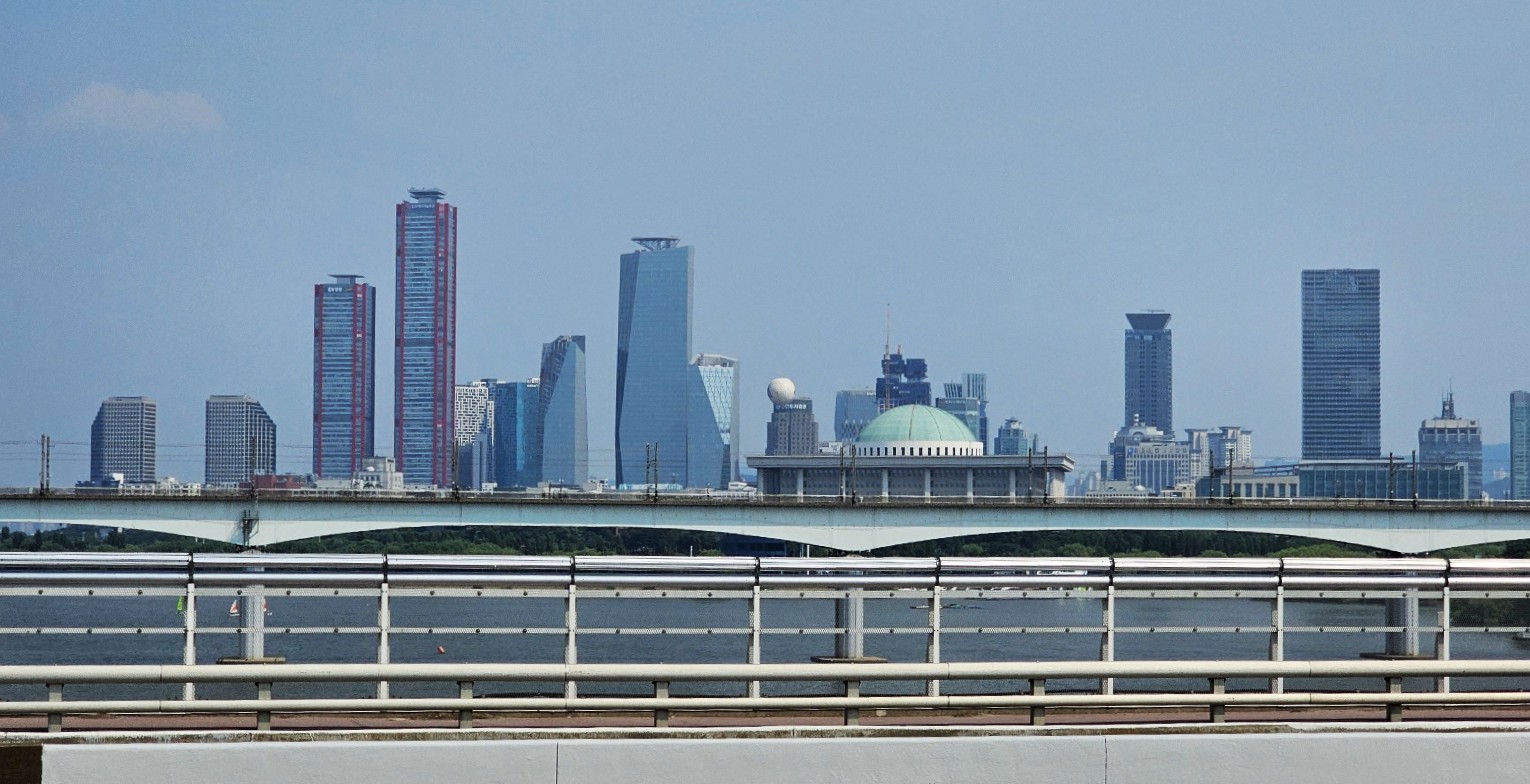 양화대교 전망카페로 가는 길에 보이는 국회의사당과 LG트윈타워등의 빌딩숲 전경은 외국같은 분위기다,