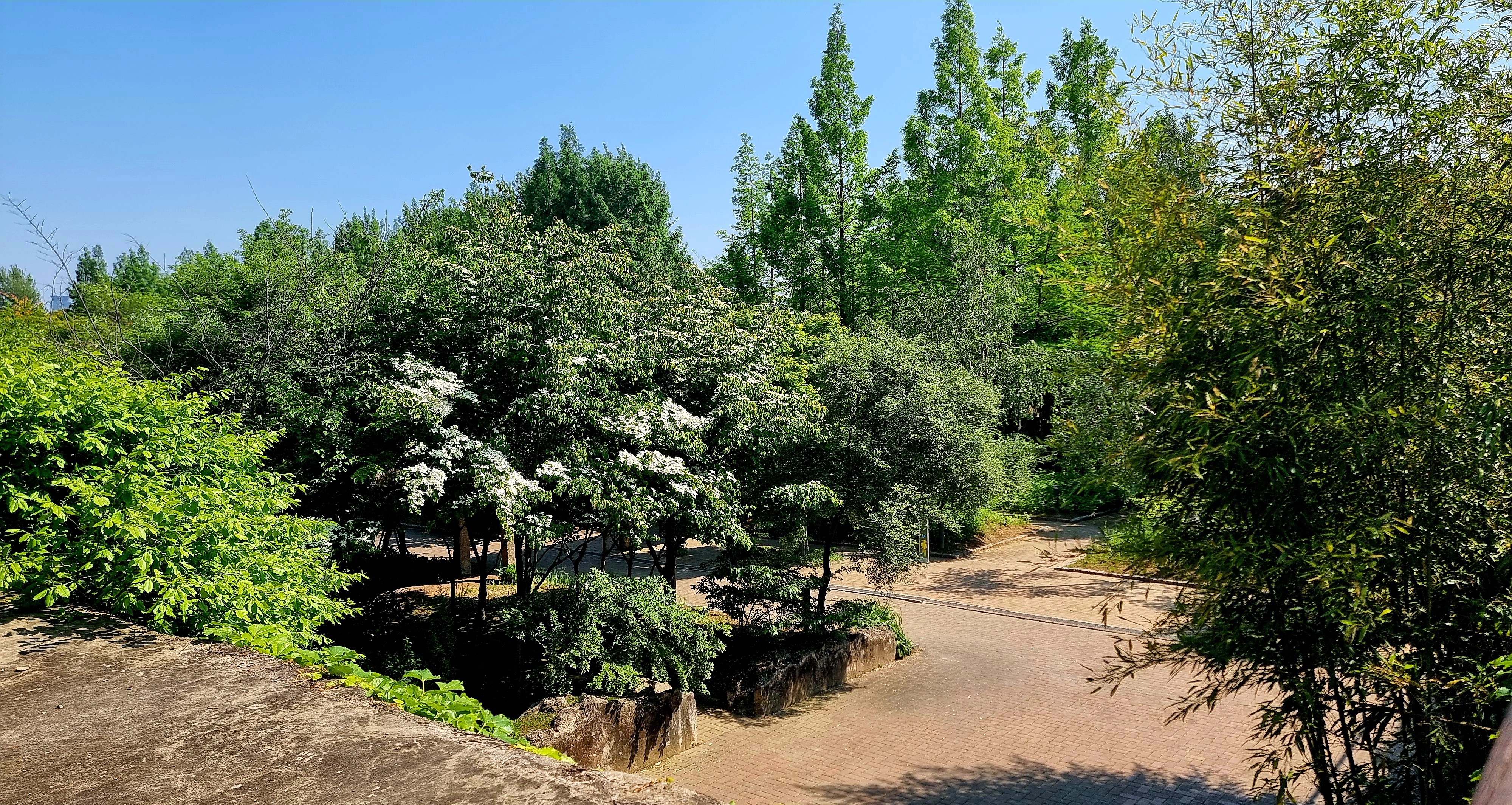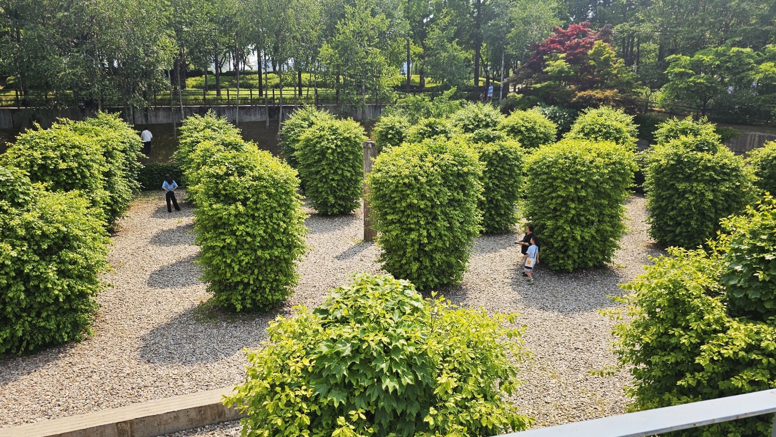 정수지의 콘크리트 상판을 걷어내고 기둥을 남겨 만든 녹색기둥 정원도 있다,