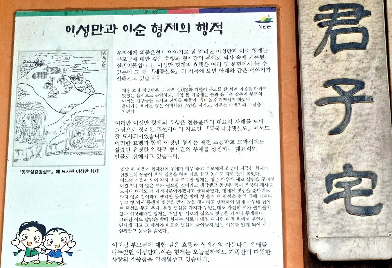 이 처름 부모님에 대한 깊은 효행과 형제간의 아름다운 우애를 나누었던 이성만과 이순 형제는 오늘날 까지도 가족간의 따뜻한 사라의 소중함을 일깨워 주고 있다,