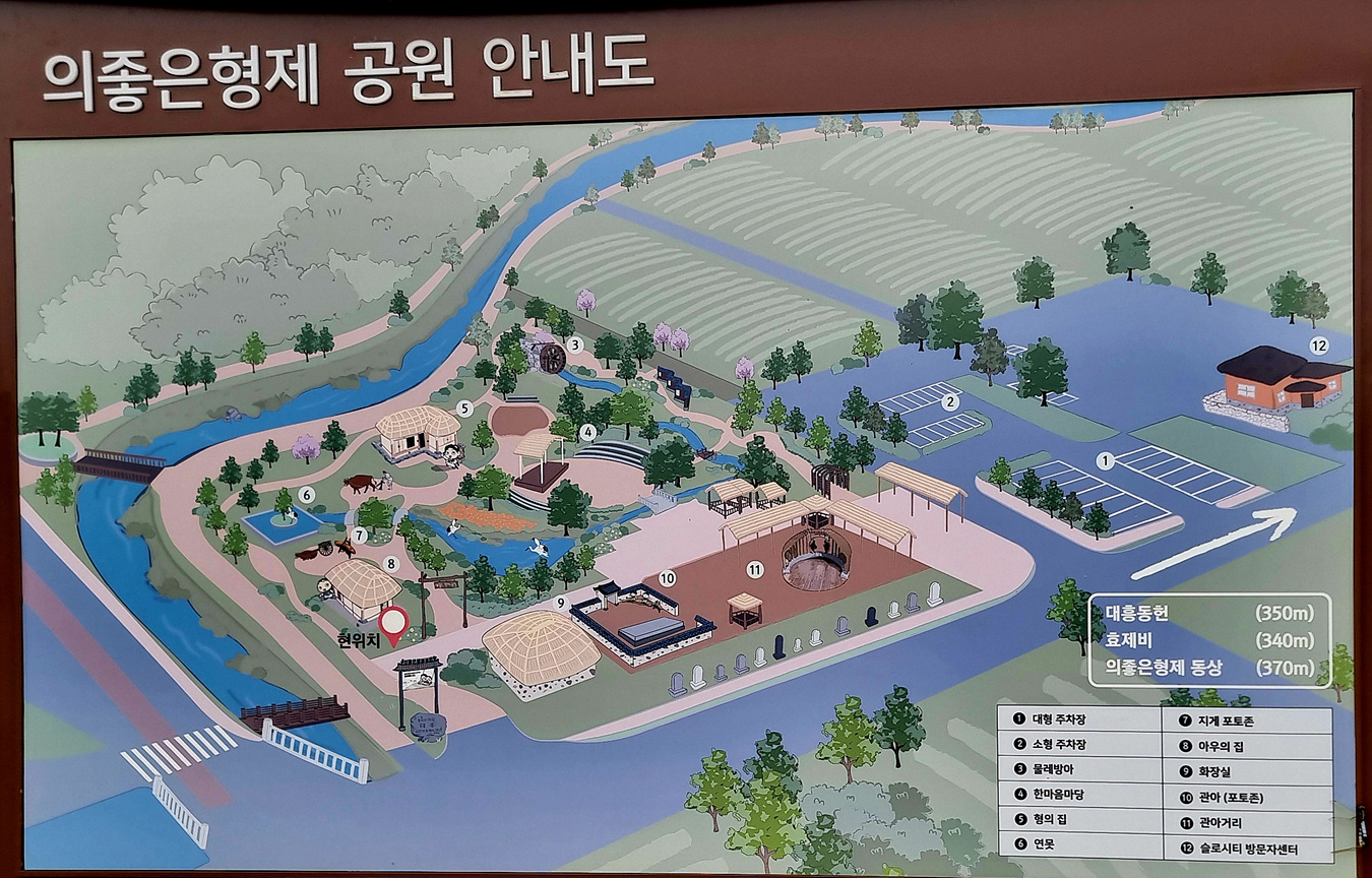 대흥역을 앞쪽으로 의좋은 형제공원에 실제 두 형제의 집과 두 형제가 오갔던 거리가 재현되어 있다는 곳으로 간다,