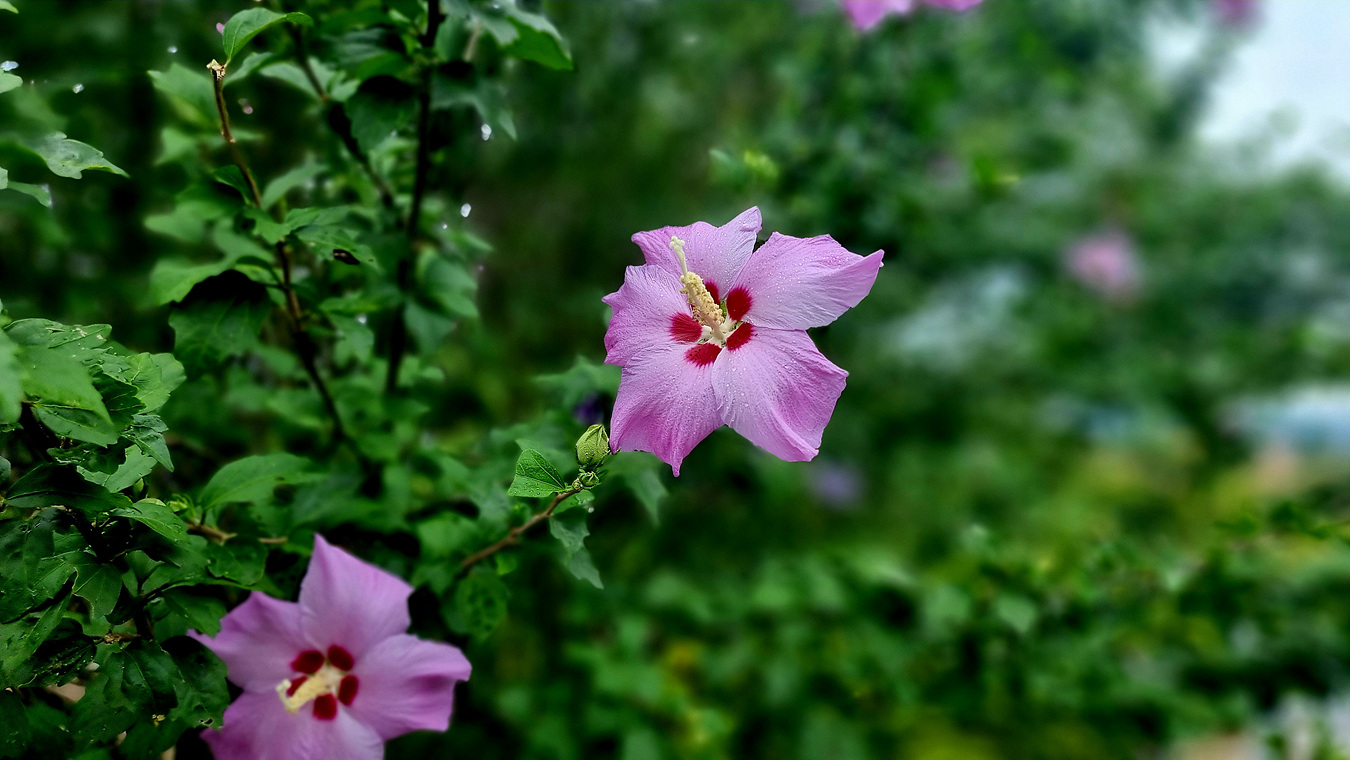 촉촉히 내리는 빗 방울을 머금은 무궁화는 의좋은 형제공원의 운치를 더해 주는듯하고