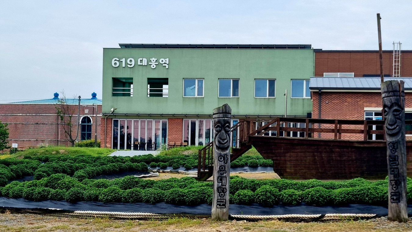 과거의 역사와 현재의 문화가 어우려진 이곳은 슬로시티 예산의 중심지이자 지역 주민과 방문객들에게 다양한 문화 체험과 휴식 공간을 제공한다는 장소다, 이곳에는 대흥주막과 슬로시티 마켓이 상시운영되어 방문객들에게 전통음식과 예술 작품을 선보인다고 알려 졋는데 조금 떨어져 보아서 그런지 619 대흥역은 문이 닫혀 있는듯 했다,