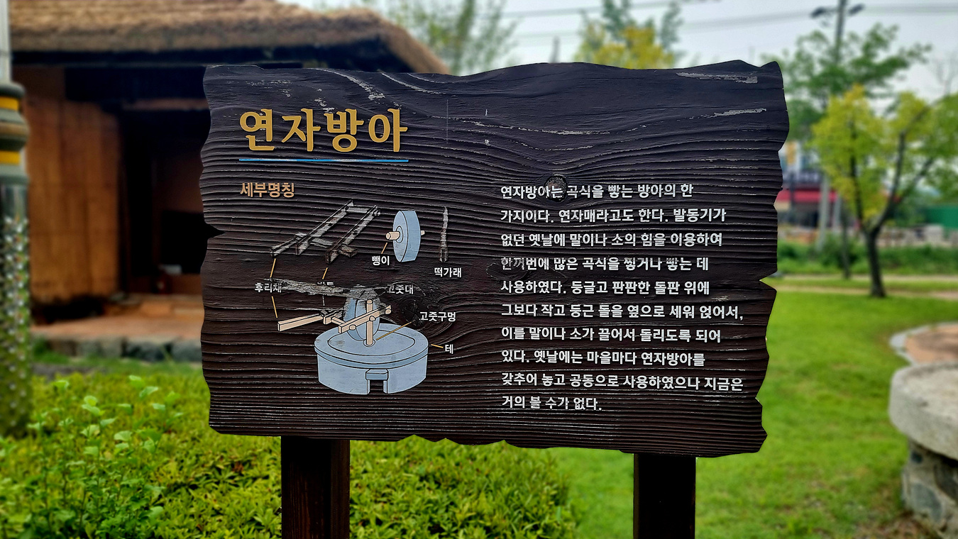 연자방아는 곡식을 빻는 방아의 한가지로 연자매라고도 한다, 발동기가 없던 옛날에 말이나 소의 힘을 이용하여 한꺼번에 많은 곡식을 찧거나 빻는데 사용하였다,