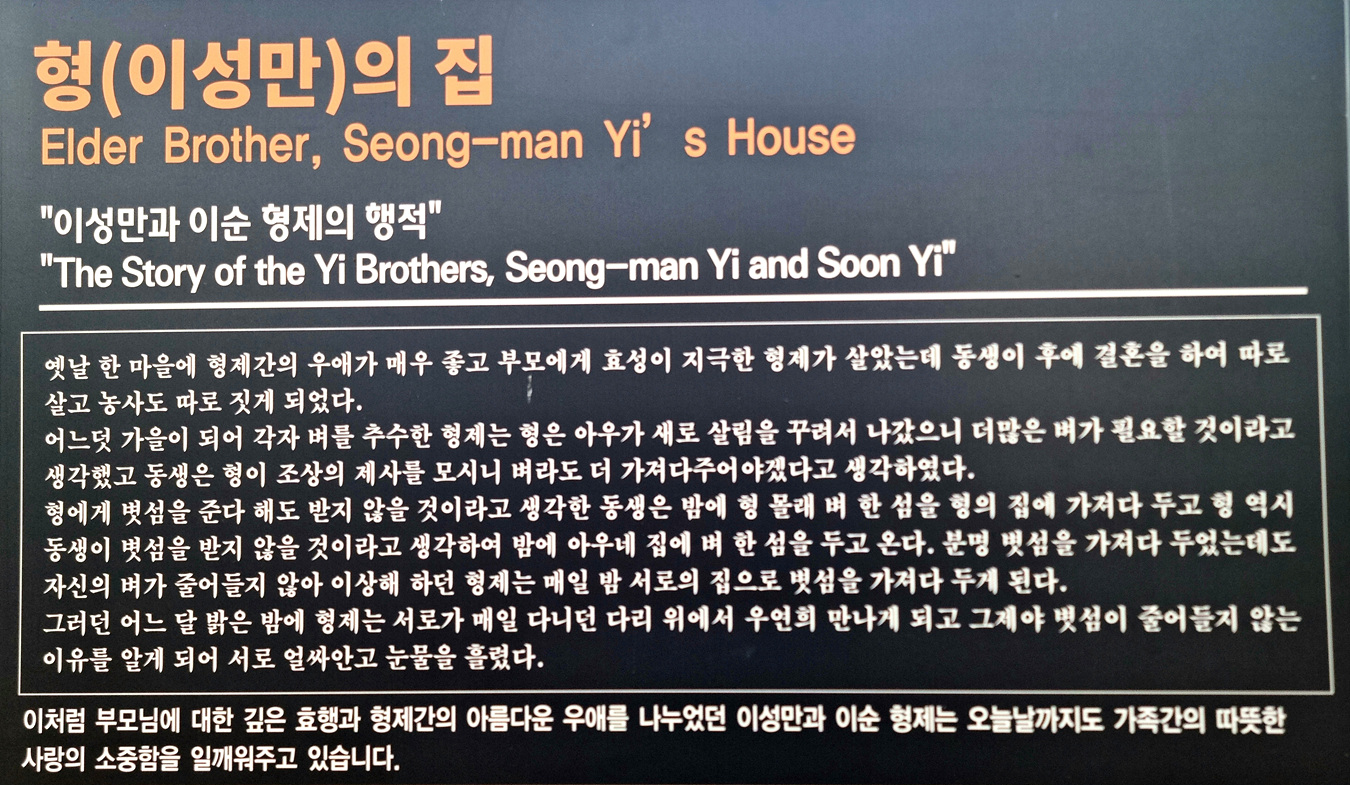 디딜방아가 있는 이 집은 의좋은 형제의 형인 이성만의 집으로 이성만과 동생 이순 형제의 행적에 대한 이야기가 안내되여 있다,