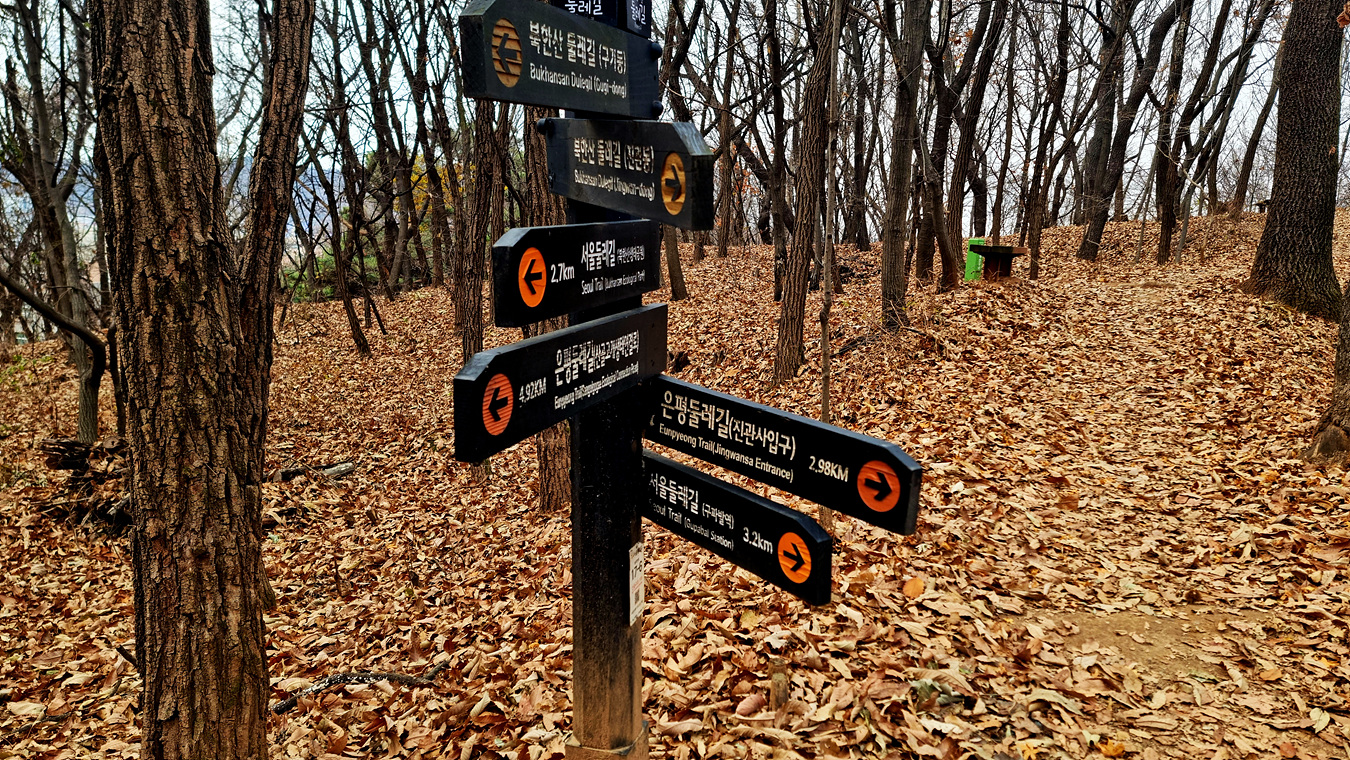 여기서 오른쪽으로 가면 북한산 둘레길이고 왼쪽은 서울둘레길이다,