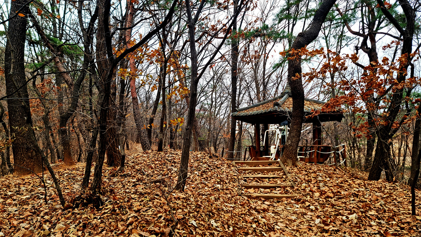 주민들이 많이 이용하는 낮은 언덕 산이라 운동기구도 있고 쉼터도 있다,