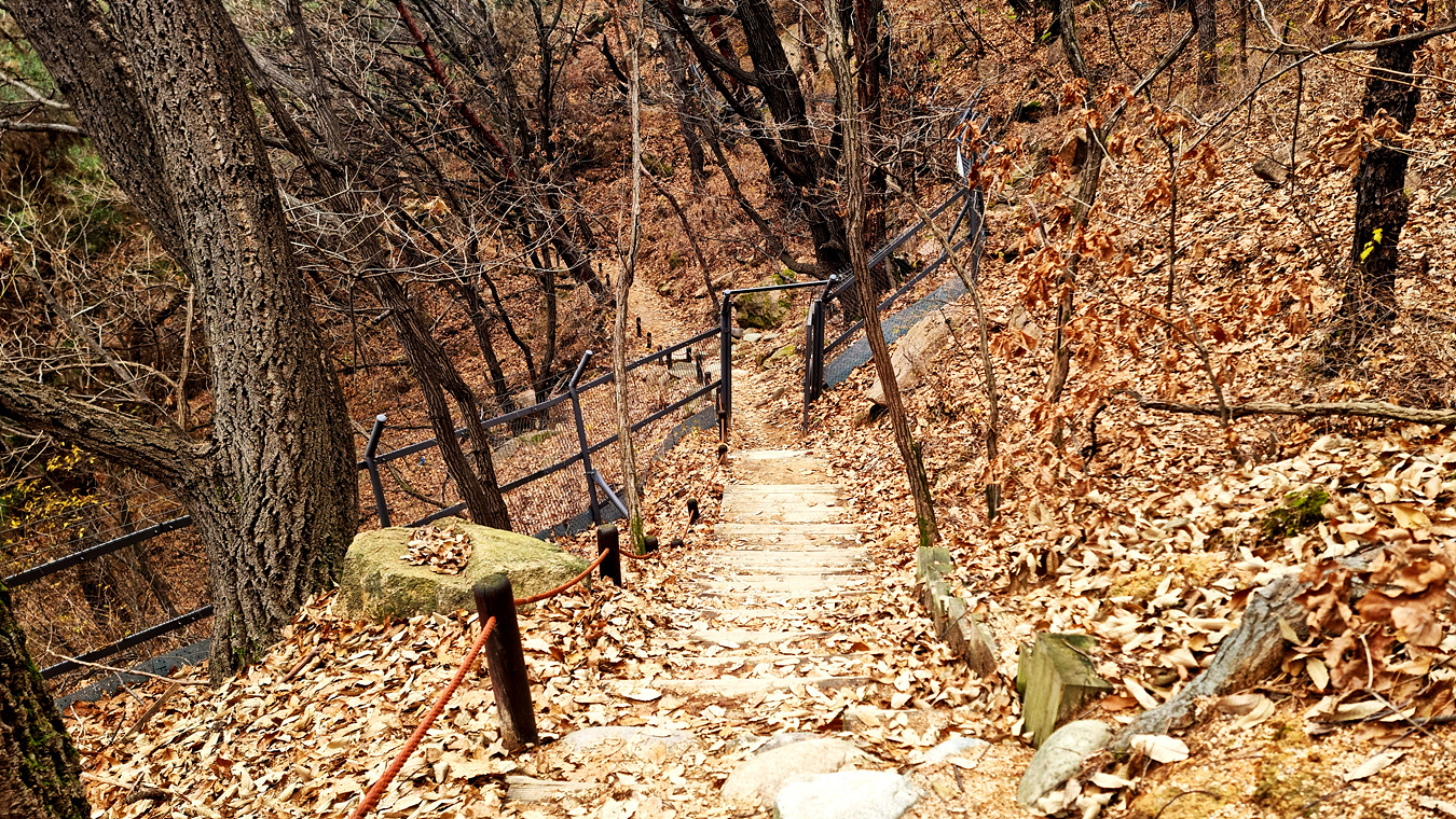 계단을 따라 조금만 올라가면 불광사라는 절이 있고 둘레길은 불광사 뒤로 이어진다,