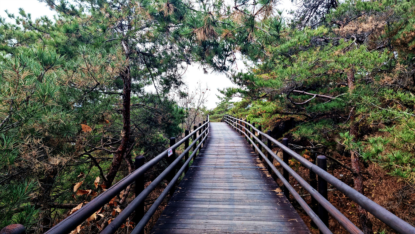 이어서 하늘을 걷는 느낌을 갖을 수 있도록 공중에 조성되여 있다는 데크길을 만나게 되고
