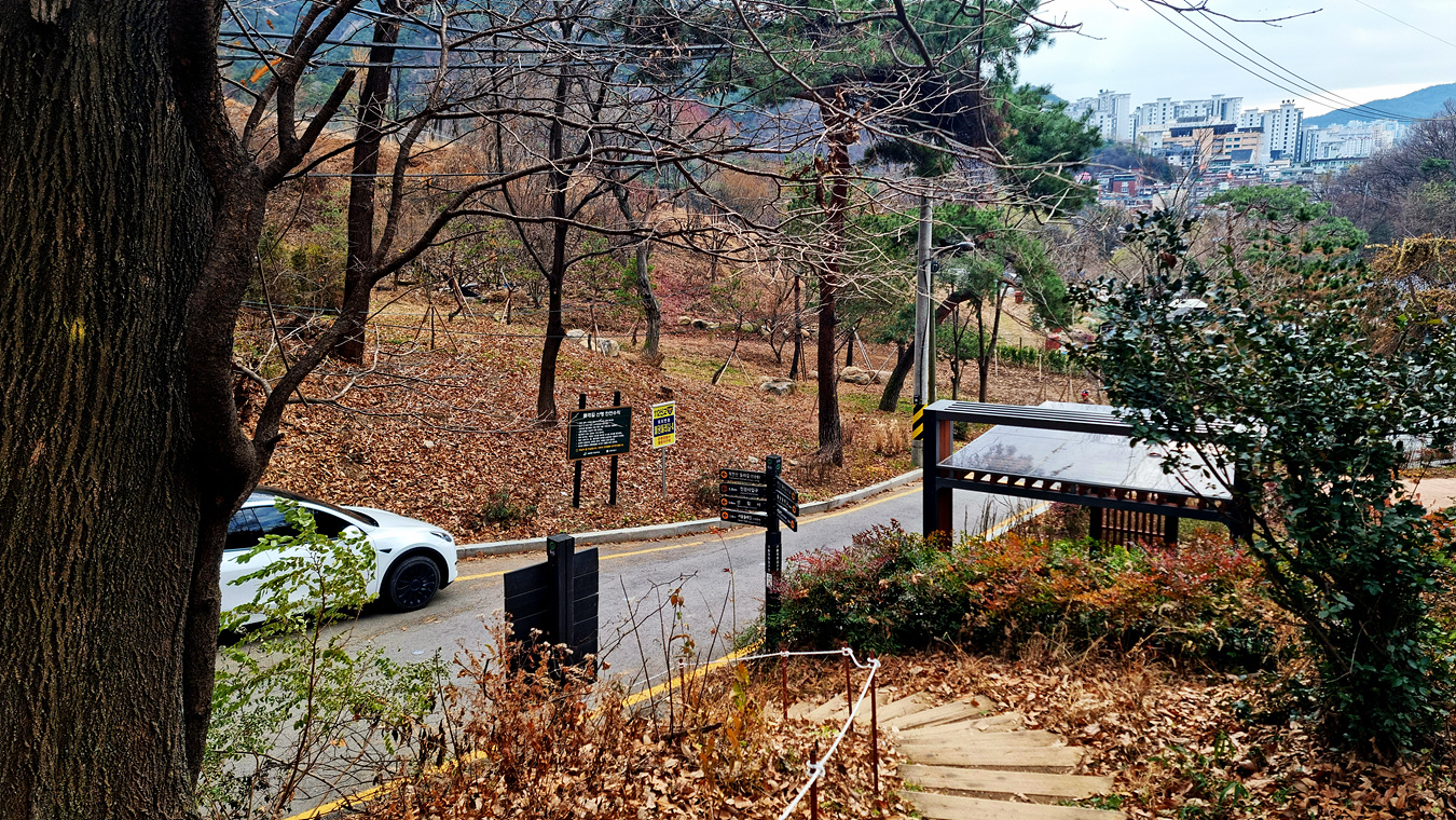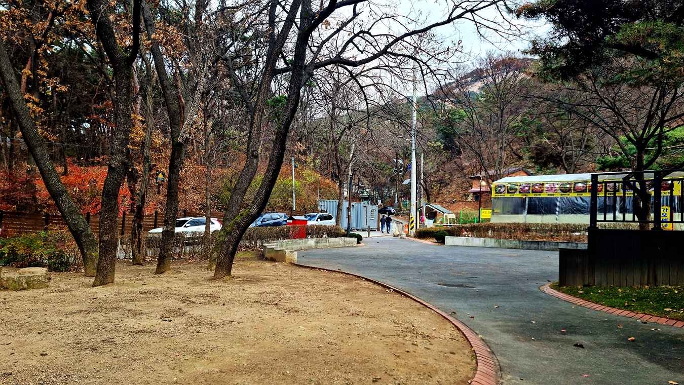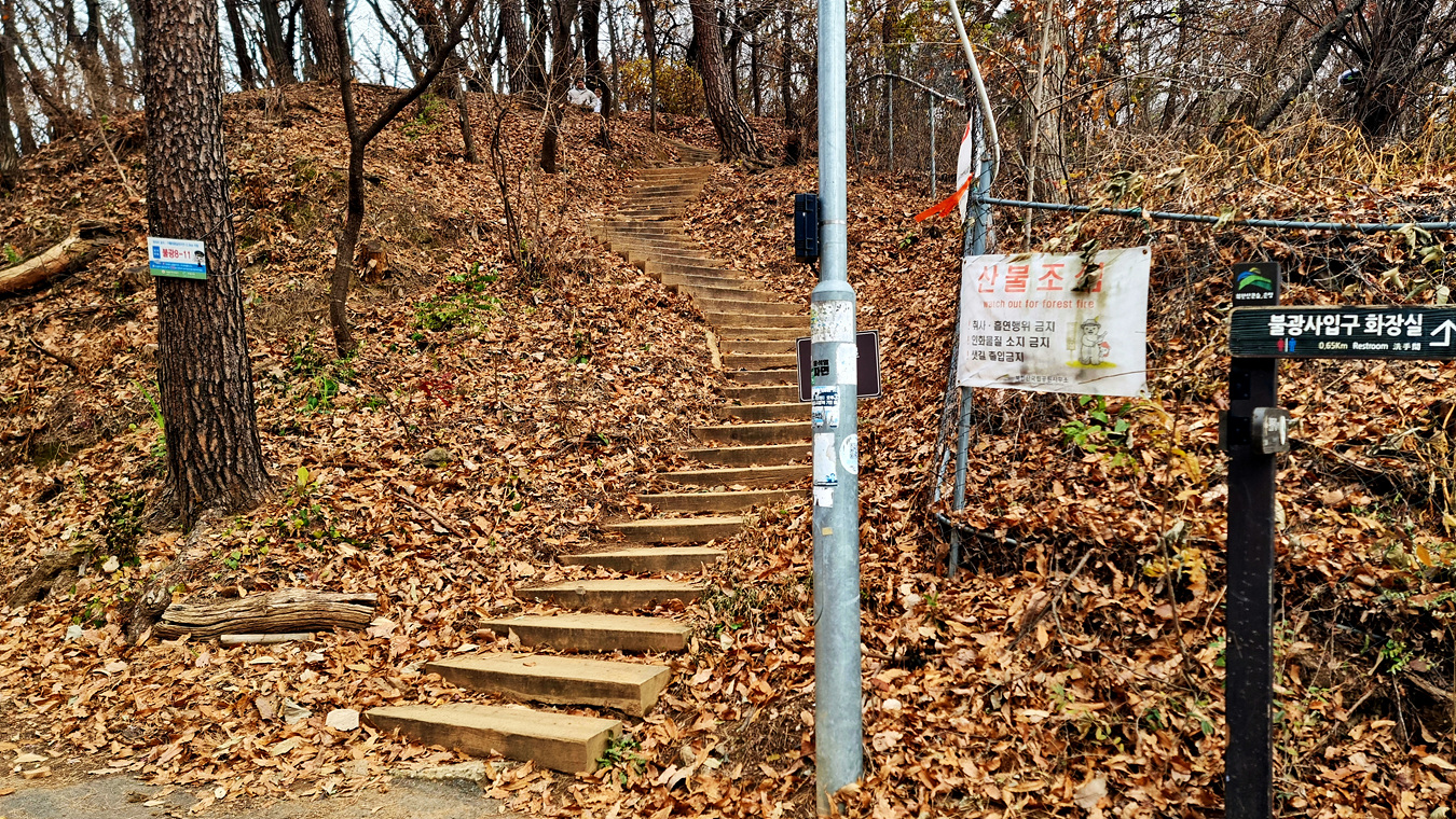 수리공원에서 20여m를 더 가면 불광사입구 화장실이 있고 화장실 끝 쪽에는 불광사가 있는 곳이다,