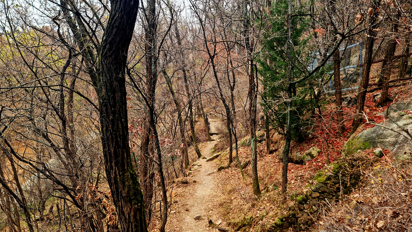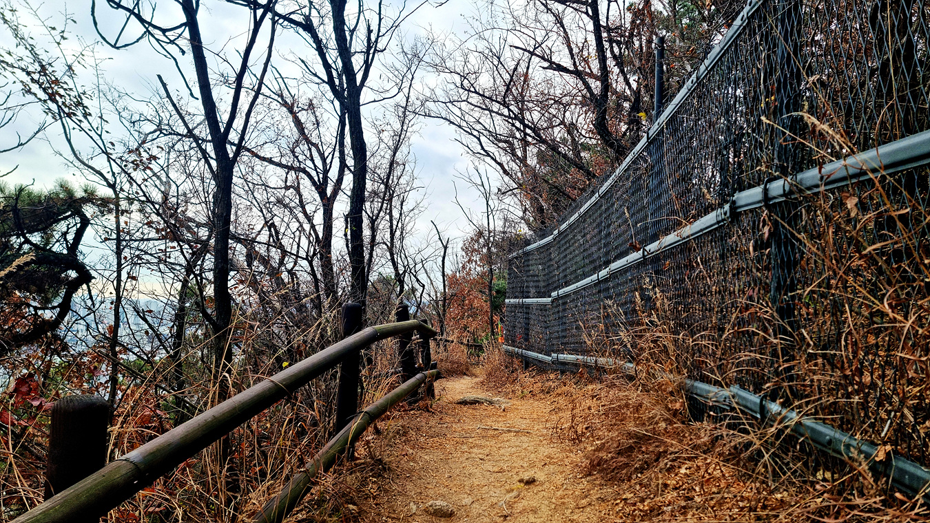 둘레길을 걷다가 행여라도 산에서 굴러 내리는 돌 등에 다칠까봐 방지막 울타리도 쳐저있다,