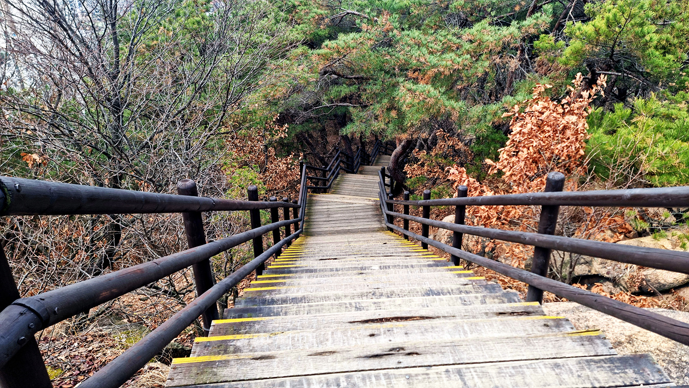 조금은 가파라 보이는 계단길이지만 편안하게 올라갈 수 있는 동네 마실길과 같은 길을 천천히 올라가고