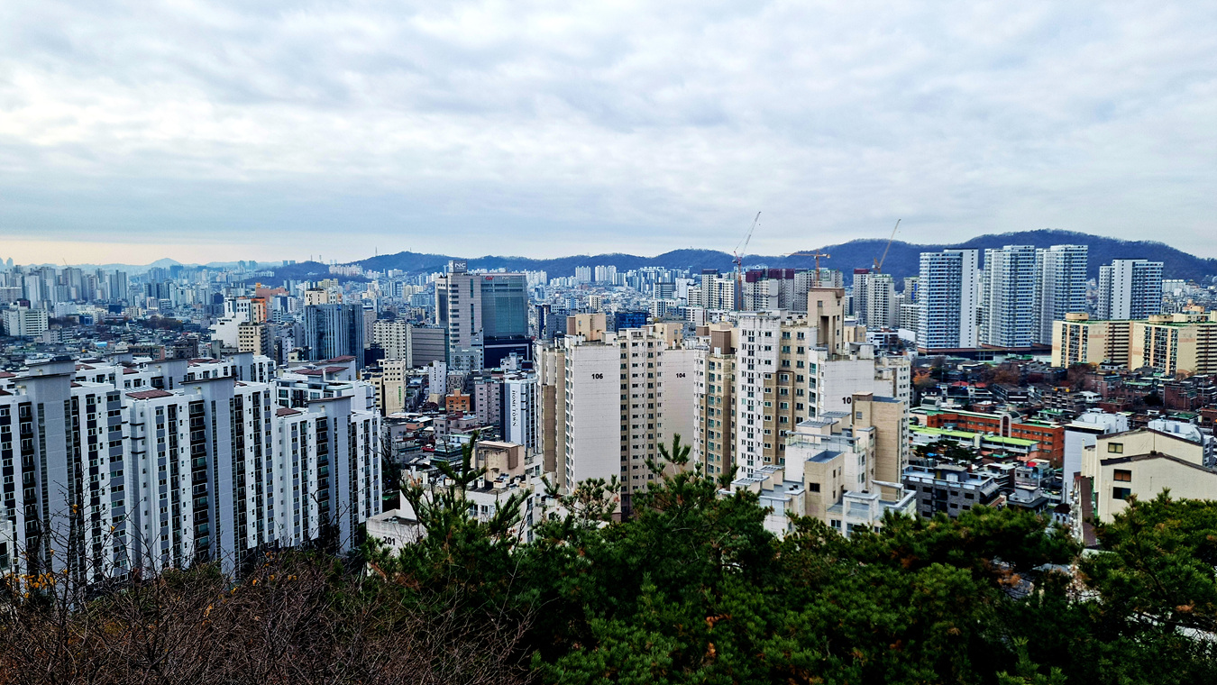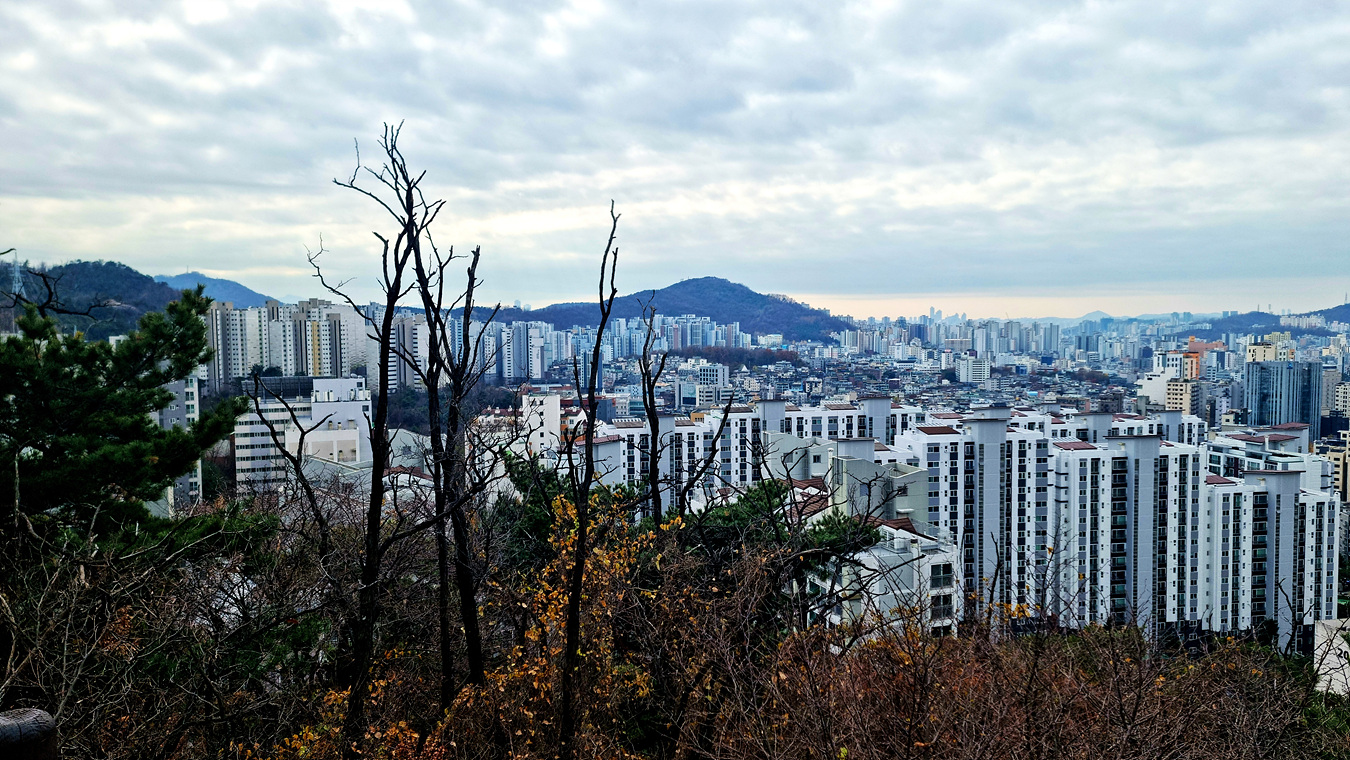 정면으로 은평구 대조동을 중심으로 펼쳐지는 도심과