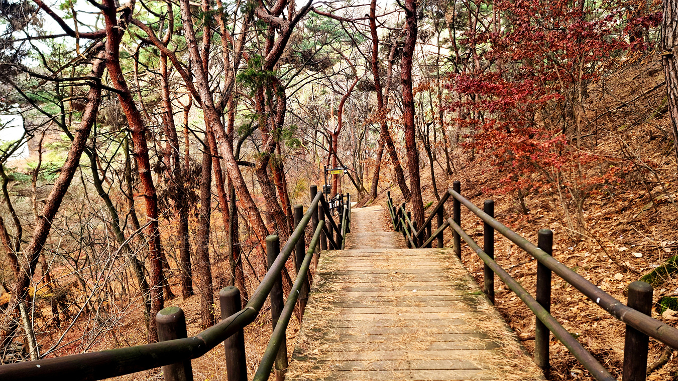 이어지는 데크길을 잠시 따라가다 보면 아랫쪽에 절이 보이는데
