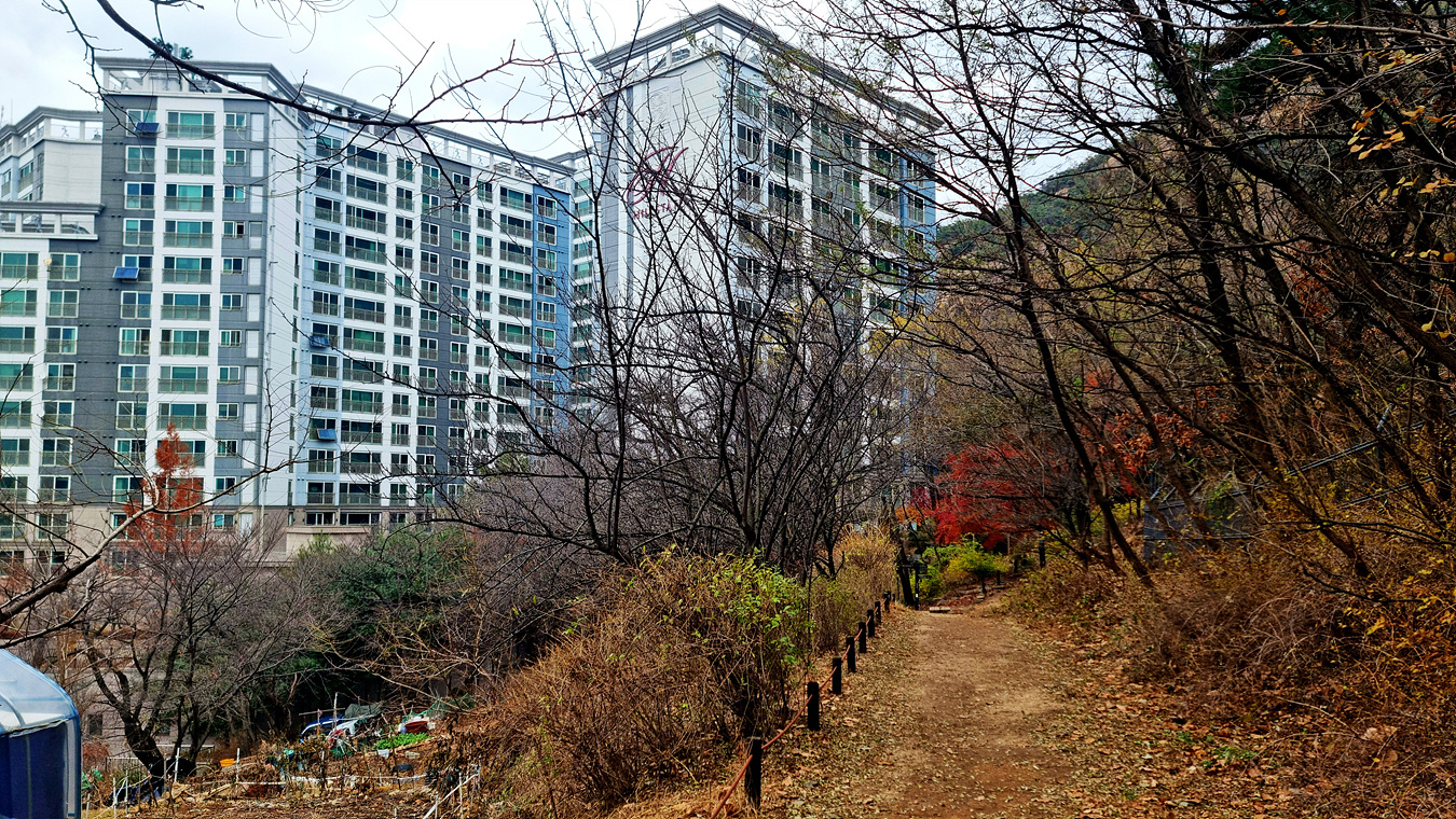 가는길 둘레길에서 보이는 아파트단지는 불광1동 북한산힐스테이트 3차 아파트 뒤 길로