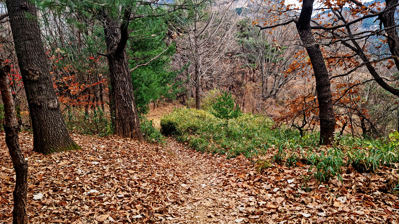 이 길의 특징은 한마디로 낙엽 길이다, 발목까지 푹푹 빠지지는 않지만 낙엽 밟는 소리가 사각 사각 들리는길이다,