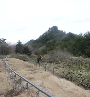 참샘에서 소지봉 까지는 약 400m다, 그러나 계속해서 올라온 경사와는 사뭇다른 가파른