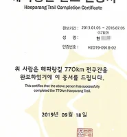 | 해파랑길 완보(종주)인증서(2019년 9월 18일) (0) | 2021.01.15 |
