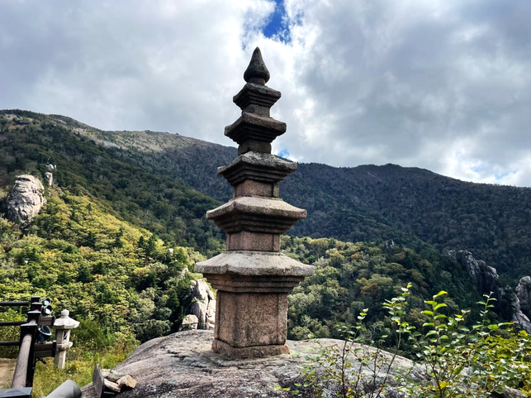 봉정암 뒤 주변이 탁 트인 절벽위에 자리한 석가사리탑에 이르면, 눈에 들어오는 경치만으로도 절로 탄성이 나온다. 어떻게 자장율사는 이렇게 좋은 장소를 찾아 탑을 세우고 후세 사람들이 찾아와 심신을 청정하게 하도록 했을까?